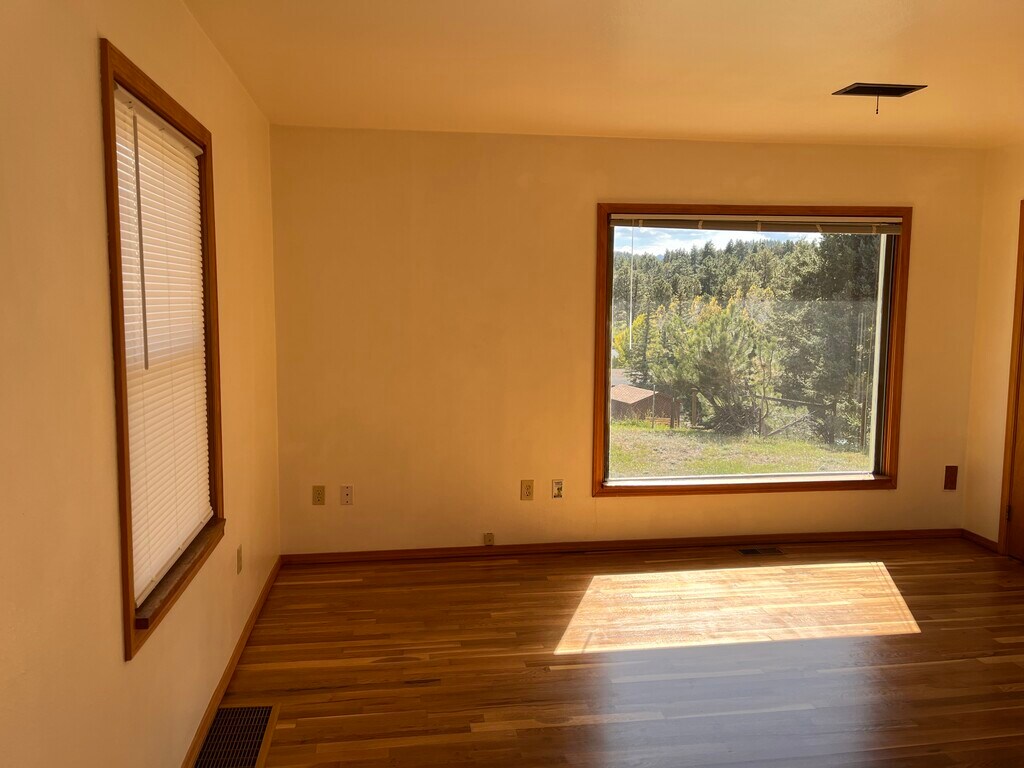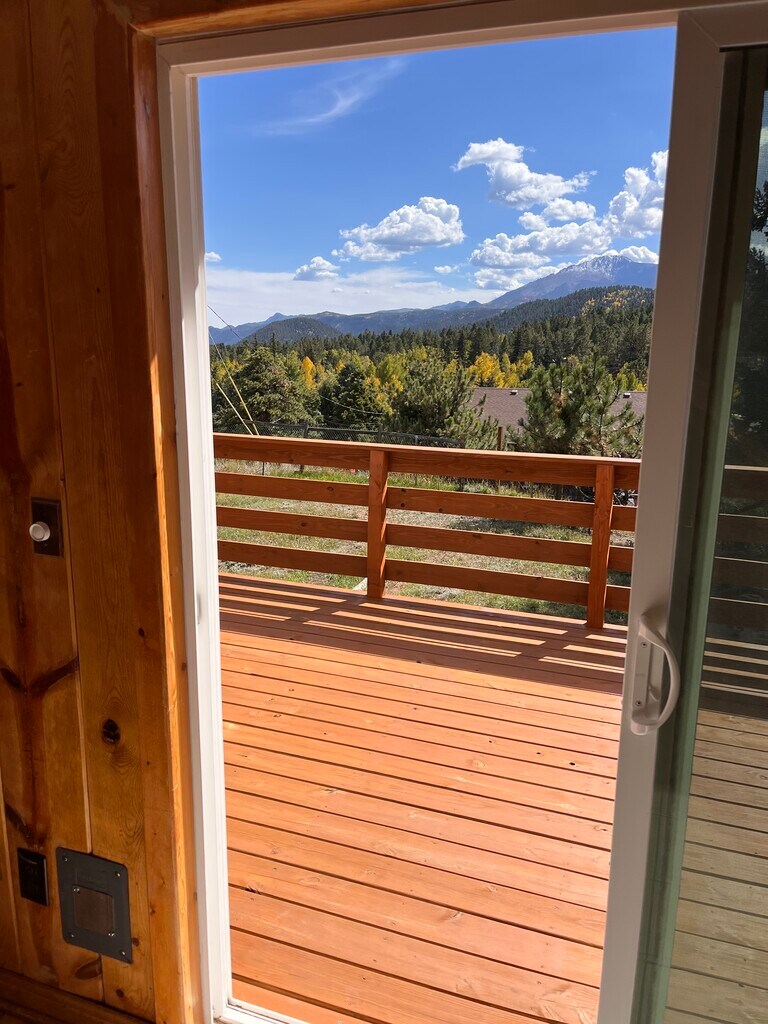 Cozy Mountain Retreat with Stunning Pikes Peak Views Nestled on a quiet private street, this charming 940 sq ft home offers the perfect blend of comfort, privacy, and breathtaking scenery. With 2 spacious bedrooms and 2 bathrooms thoughtfully located on opposite sides of the home, it provides ideal separation for guests or a roommate setup. The open-concept living area sits at the heart of the home, filled with natural light and perfectly positioned to take in the magnificent, unobstructed views of Pikes Peak through the back windows. Step out onto the brand new rear deck and soak in the beauty of Colorado's most iconic mountain an ideal spot for morning coffee or evening sunsets. This inviting home is a rare gem with million-dollar views in a tranquil setting. Wood floors just refinished. Interior recently painted. New shingles. All rooms on one level. Nice shed with light and power. Easy walking distance to downtown Woodland Park. Owner may consider up to 2 medium sized pets upon approval, with a $300 pet deposit and $35 month pet rent. Washer and dryer hookups.