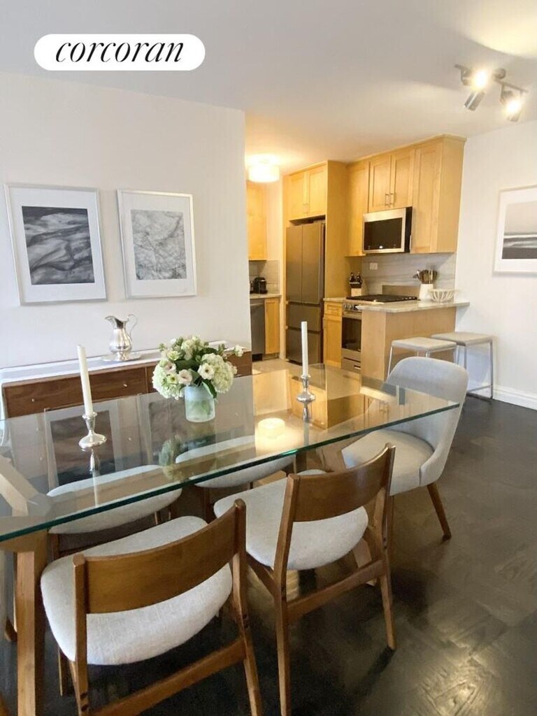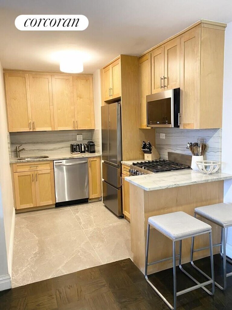 Charming Junior 1-Bedroom with Open Eastern Views of Tudor City305 East 40th Street, Apt 19 - The HamiltonWelcome to this beautifully appointed Junior 1-Bedroom on the 19th floor of The Hamilton, a full-service cooperative in the heart of Midtown East. Bathed in natural light with open eastern views overlooking Tudor City, this home offers a peaceful urban retreat.The renovated kitchen features granite countertops, stainless steel appliances-including Samsung dishwasher, Haier stove, refrigerator, and microwave-along with tall shaker-style cabinetry and a convenient breakfast bar. Hardwood floors flow throughout, enhancing the bright and airy layout.The newly renovated bathroom exudes European flair, featuring a luxurious rain shower and handheld wand that can operate simultaneously or separately. Modern flush-mount lighting, controlled by individual switches, allows you to tailor brightness to your morning routine.The spacious living area opens seamlessly from the entry, which includes a large closet with floor-to-ceiling doors and ample shelving. The separate bedroom provides privacy and comfort, with two east-facing windows and a custom built-in cabinet for additional storage.Places of interest, Grand Central Terminal, the UN, and Midtown's business district, The Hamilton offers easy access to ferries, the 35th Street heliport, and multiple transit options connecting you to the city.Building amenities include a 24-hour concierge, landscaped roof deck, garage, bicycle room, and laundry facilities. Built in 1962 and converted to a cooperative in 1983, The Hamilton is a 21-story, 359-unit luxury building. Guarantors and co-signers welcome.1st month rent, 1 month Security deposit equal to rent amount. Rent Amount $4,800.00 Rent plus Sec Total $9,600.00Applicant - Application Processing Fee (Non-Refundable) Submission$575.00Applicant - Credit Check Fee (Non-Refundable) Submission$150.00 per applicantApplicant - Move In Deposit (Refundable, Due to Building) Submission$500.00Applicant - Move In Fee (Non-Refundable, Due to Building) Submission$100.00