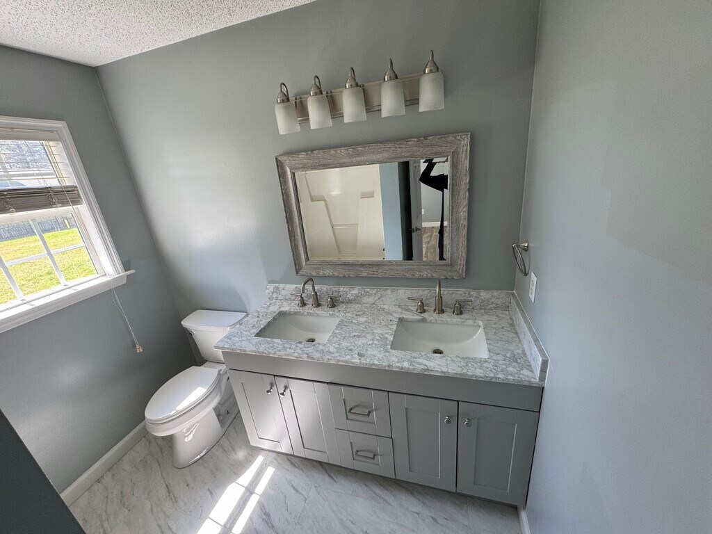 A like new home in a wonderful neighborhood Up for rent is a totally remodeled home with 3 bedrooms, 2 bathrooms, 2 car garage with a paved three car wide driveway, a large detached shed in the back yard, and more. This property sits on a half acre lot and it has a huge backyard with a fireplace that is totally fenced. The bathrooms were just remodeled with new flooring, vanities, countertops, faucets, and new toilets. Not a single person has used these bathrooms in any capacity. They are brand new! The home has new LVP flooring throughout and several of the windows were just replaced too. The range, microwave, dishwasher, refrigerator, and the clothes washer has all been replaced recently! Several trees were removed from the property about 5 years ago. Multiple truck loads of fill dirt was brought in, graded, and grass has been planted.