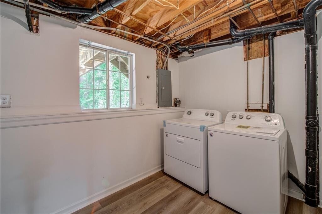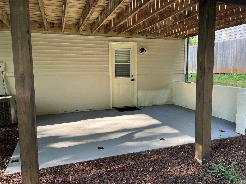 Recently renovated Private Studio Apartment on ground floor with private shaded porch and a tranquil view. A secure private exterior entrance plus an additional garage entrance. Extra Large Bedroom with lovely natural lighting accented by a gorgeous painted brick fireplace. Eat-in-Kitchen including a new fridge,range,sink,microwave and cabinet,Full Custom Bath,Private interior storage room,Exclusive Laundry room including washer and dryer. Unfurnished. Pets considered with a pet security deposit and additional $50 monthly rent. One enclosed garage parking space included with additional driveway and street parking available. Utilities are a percentage of the monthly whole house electric,gas,and water bills. Location,Location,Location... Quiet Roswell neighborhood less than a mile from Hwy 9 / Alpharetta Highway a few miles away from GA/400. Parks,Greenway,Shopping,Entertainment,and Restaurants all nearby. 12 month lease. Follow the link to RentSpree to apply. $49.99 application fee per adult paid directly to RentSpree. Call or text listing agent Mark for more details and showing requests. Vacant