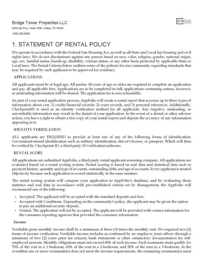 Unit Rent and Fees