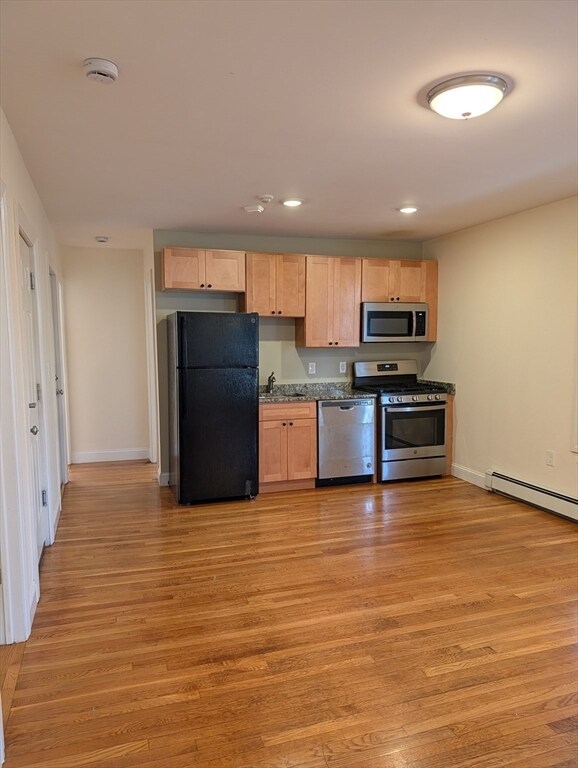 East Cambridge 2nd floor 4 bedroom 2 bath on Hurley Street! Hardwood floors throughout. Updated kitchen with dishwasher and granite counters. Nice large living room with space for dining. Windows on 3 sides. 2 Updated bathrooms. HUGE common back yard! Shared laundry in the basement. Located between the Kendall/MIT T stop and the Lechmere T stop - and easy access to MIT,shopping,restaurants and Inman Square. Available now. MLS# 73421875