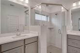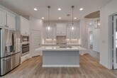 This previous model home is a show stopper full of upgrades! The grand front entry leads past the utility room and mudroom into the open concept floor plan. On the left will be the home office with a French door entry that flows into the large family room and dining area. Kitchen hosts a corner walk-in pantry complete with refrigerator, gas stove, oven, quartz counters and plenty of cabinet space. At the rear of the home is the secluded primary suite which includes oversized windows, en-suite bath with dual vanities, a walk-in closet, linen closet, and a large glass enclosed shower with stunning tile. Secondary bedrooms come with walk-in closets and towering ceilings. Complete with a covered backyard patio, tasteful landscaping for comfort for elevating living, and full irrigation systems included. Don't miss out on the opportunity to call this masterpiece your home!