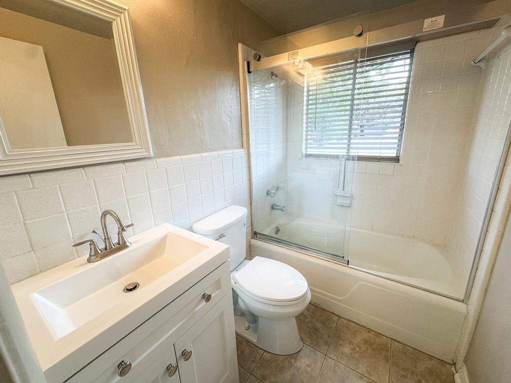 Beautifully updated 4 bedroom, 2 bathroom home featuring wood vinyl flooring throughout and modern finishes. This floor plan offers a welcoming living area, bright kitchen, and a comfortable primary suite with a luxurious tiled walk-in shower. Enjoy stylish fixtures and a fresh, move in ready feel throughout the home. The oversized backyard provides ample space for outdoor activities and entertaining, complete with a covered patio. Located in desirable Northcrest neighborhood and close to shopping, dining, and schools! Contact us for an easy showing!