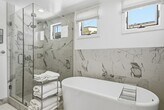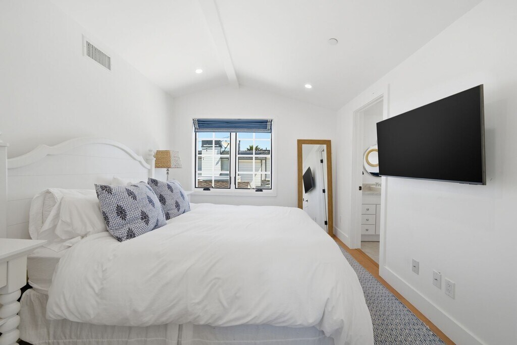 Modern coastal retreat built in 2016 and offered fully furnished for 30+ day stays in a quiet section of Newport Beach’s Balboa Peninsula. Just steps from the bay with opportunity for paddleboarding or kayaking, and an easy walk to the ocean, shops, and restaurants. Designed for indoor-outdoor living with a ground-floor patio, private balcony off the primary suite, and an expansive rooftop deck featuring a built-in BBQ, fireplace, lounge seating, and peekaboo ocean views. The home offers 4 bedrooms with a flexible layout ideal for families or extended stays. Three bedrooms are on the second floor, including a spacious primary retreat with spa-style en-suite bath, soaking tub, oversized shower, and private balcony. A fourth bedroom occupies the top floor with its own en-suite bath for added privacy. Additional amenities include central A/C, indoor laundry, and space for 1 car in the garage. A rare opportunity to enjoy beach living with comfort, style, and space.