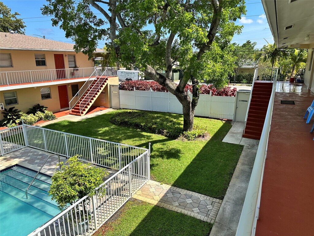 TWO BEDROOM ONE BATH UPSTAIRS APARTMENT OVERLOOKING THE PRIVATE COMMUNITY POOL. THIS IS A SMALL BOUTIQUE COMPLEX. ONLY 16 UNITS. THE APARTMENTS ARE GATED WITH KEY ENTRY. THIS UNIT HAS A NEWER KITCHEN AND NEWER STAINLESS STEEL APPLIANCES AND GRANITE COUNTER TOPS. ALL JUST REPAINTED AND NEWER CENTRAL A/C. NICE MATCHING TILE FLOORS THROUGHOUT. NEWER BLINDS AS WELL. BATHROOM HAS JUST BEEN REDONE. THIS IS A SUPER NICE PLACE TO LIVE. VERY QUIET AND CONVENIENT TO ALL. WALK TO WILTON MANORS AND BIKE RIDE TO DOWNTOWN FORT LAUDERDALE AND THE BEACH. EASY AND FAST TO GET APPROVED,WATER AND TRASH ARE INCLUDED. ONE LONG TANDOM PARKING SPOT FOR THE UNIT. MLS ID F10522648