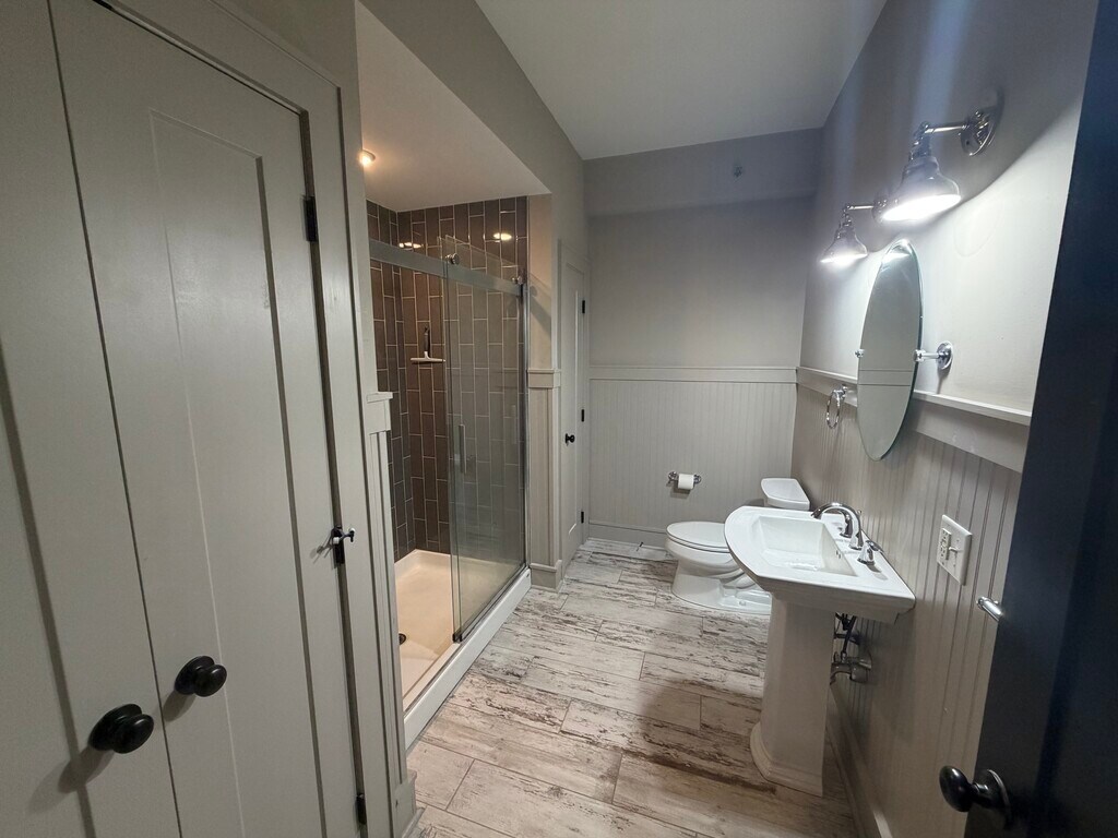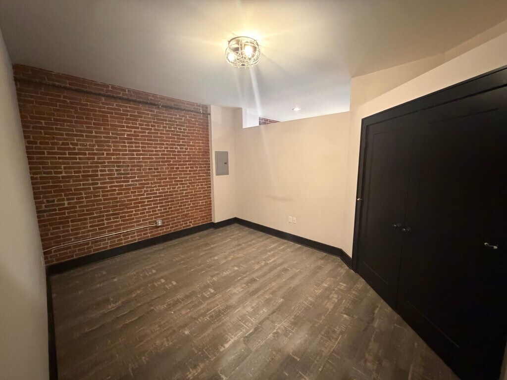 Modern One-Bedroom Loft with Exposed Brick & All Utilities IncludedStep into this stunning one-bedroom, one-bath apartment that blends historic charm with modern finishes. Featuring soaring ceilings, exposed brick walls, and sleek hardwood-style floors, this space offers a true loft-style living experience in the heart of the city.The open-concept kitchen is equipped with stainless steel appliances, dark cabinetry, and a subway tile backsplash, centered around a spacious island perfect for cooking or entertaining. The living area is bright and inviting with oversized windows, while the private bedroom offers ample closet space.The bathroom is designed with a walk-in glass shower, modern tile, and updated fixtures. For convenience, the unit includes in-unit laundry.Even better, all utilities are included in the rent, making monthly budgeting simple and stress-free.Key Features:1 Bedroom / 1 BathroomIn-unit washer & dryerExposed brick and high ceilingsStainless steel appliances with kitchen islandWalk-in shower with modern finishesAll utilities included