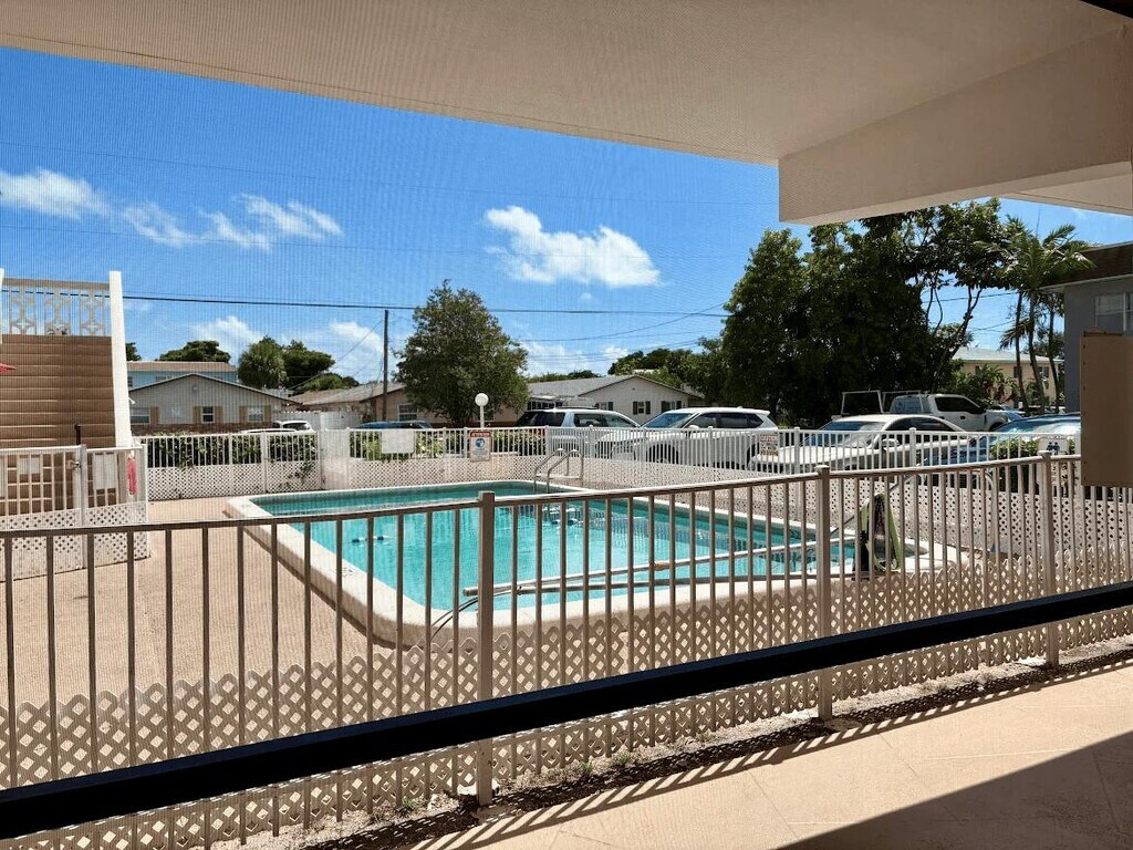 Great opportunity to rent this first-floor, pool-view apartment in a boutique building with no condo association approval required. The unit features a private screened patio, all-tile floors throughout, an updated kitchen with stainless steel appliances, freshly painted interior, impact windows and doors, and central A/C. Move-in ready with a fast approval process. Includes two assigned parking spots. Conveniently located near I-95, shopping, restaurants and the vibrant, upcoming Pompano Beach. Easy to view.