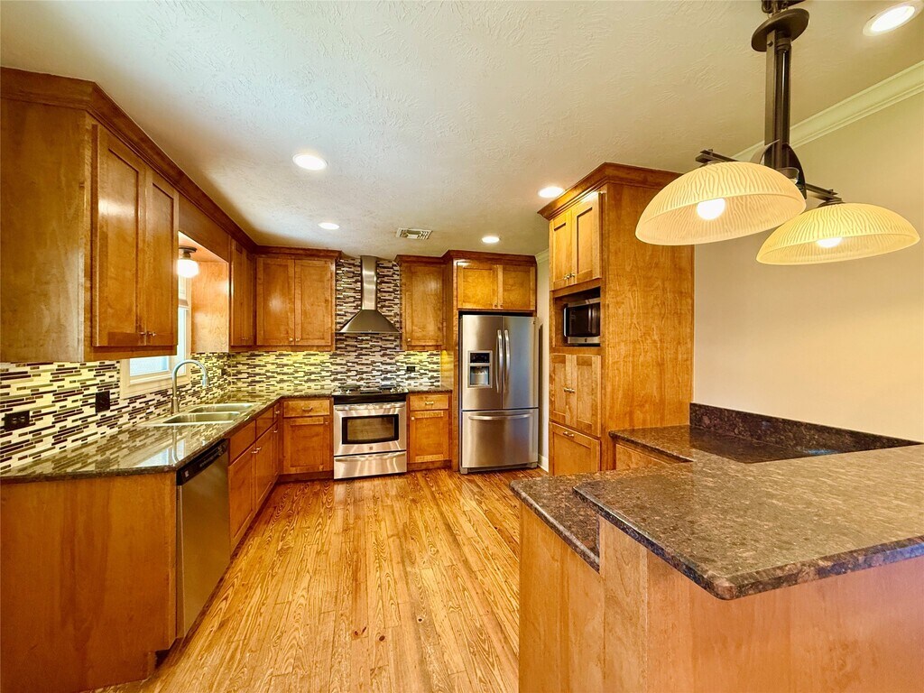 Charming 1940s Vintage Home – Fully Remodeled Near Downtown Brenham Beautifully updated 1940s home just minutes from Brenham’s charming downtown. Offering 1,311 sq. ft.,this property features 2 spacious bedrooms,1 bathroom,and a 1-car garage with additional parking in the back. Enjoy the fenced yard,storage building,and inviting curb appeal. Inside,you’ll find gorgeous wood flooring throughout,granite countertops,and ceiling fans in every room. The kitchen includes stainless steel appliances,custom cabinetry,and plenty of counter space. Generous living and dining areas provide an ideal layout for comfort and entertaining. MLS# 40622347