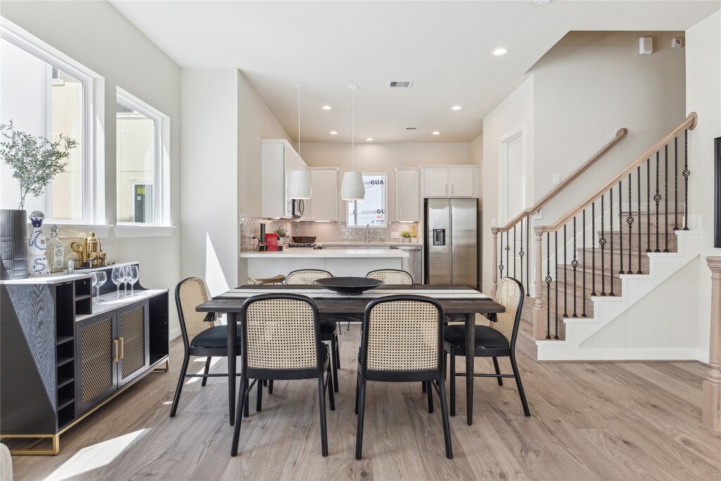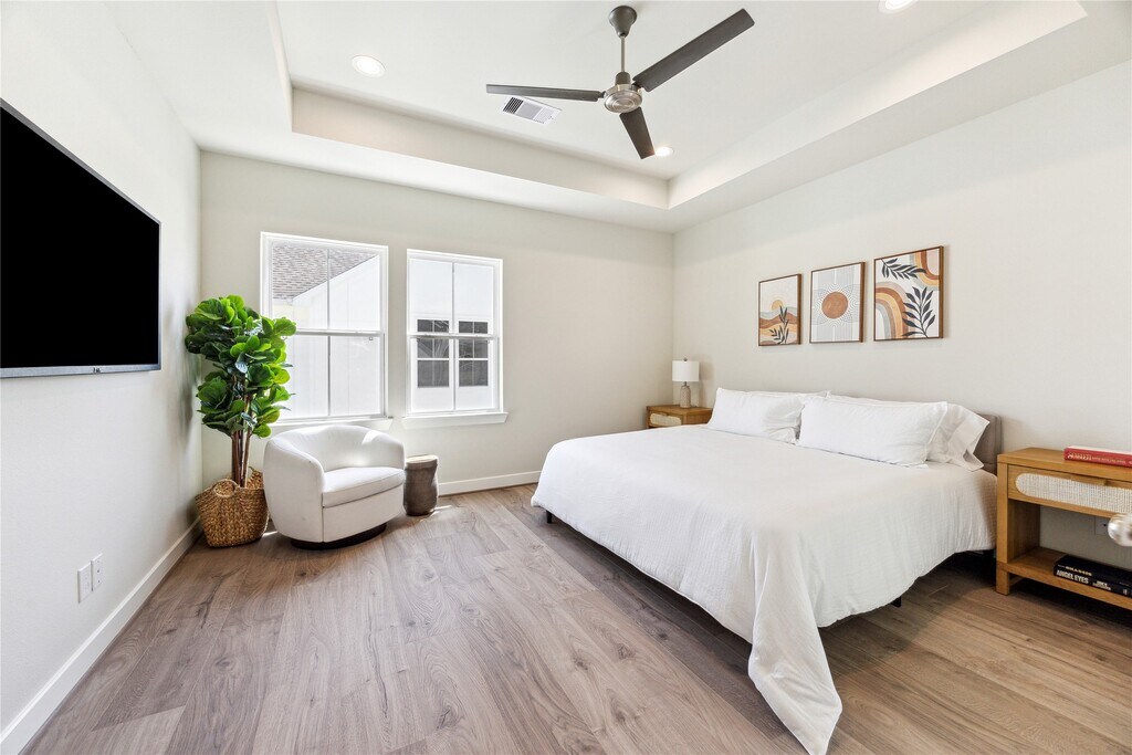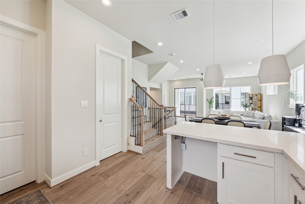 Never lived in and formerly the model home,this new construction 3 story residence by City Choice Homes is located in White Oak Station,a community offering a private dog park and a private pickleball court with downtown skyline views. Inside,the home showcases gorgeous hardwood flooring throughout,a balcony off the massive light-filled living area,and a kitchen with expansive peninsula,quartz countertops,premium appliances,a wine fridge,and refrigerator included. The residence provides three bedrooms and three-and-a-half baths,including a luxurious primary suite with 10’ tray ceilings,a spacious walk-in closet with built-ins,and a spa-like bath with dual vanities,soaking tub,glass-enclosed shower,and private water closet. Secondary bedrooms feature private en-suite baths,making this home both stylish and functional,all within minutes of the dining,shopping,and entertainment of Washington Avenue and The Heights. MLS# 78165030
