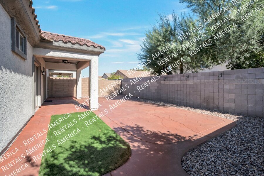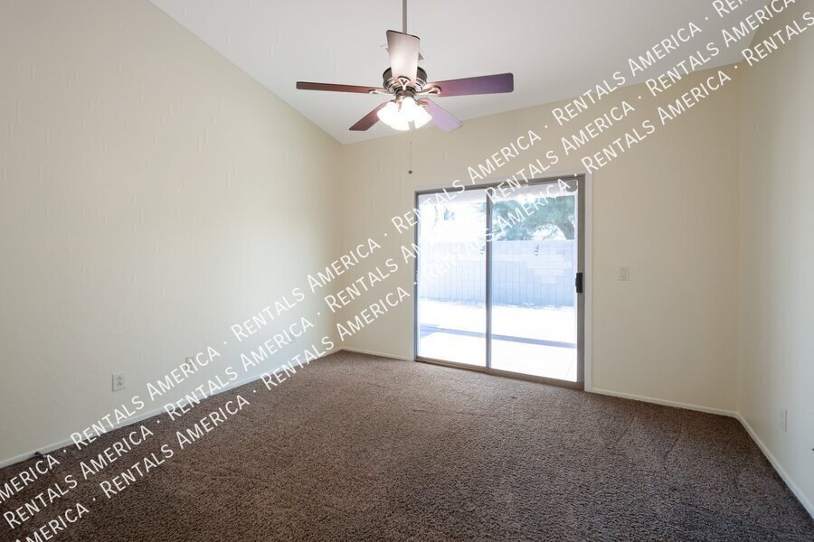 This charming 3 Bedroom 2 Bath w/ 2 Car Garage in Mesa Has Front Yard Maintained by the HOA! Kitchen Has Honey-Colored Cabinets, Black Appliances & Easy to Clean Floors. Dining Area Opens onto Large Covered Patio & Perpetually Green Backyard. Master Suite Has Private Access to Backyard, Walk-In Closet, Dual Vanities & Rainfall Shower Head. One Time Admin Fee: $300, Pet Deposit: $300/pet (if applicable), Service Fee: 2%:. $39/month Resident Benefits Package, Helping Heroes Discount Available! Carpet Cats Allowed Ceramic Tile Disposal Dogs Allowed Dryer Garage Pets Allowed Vaulted Ceilings Washer