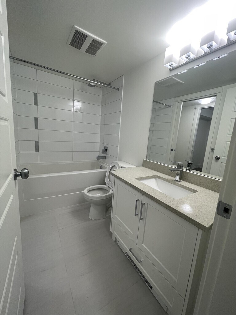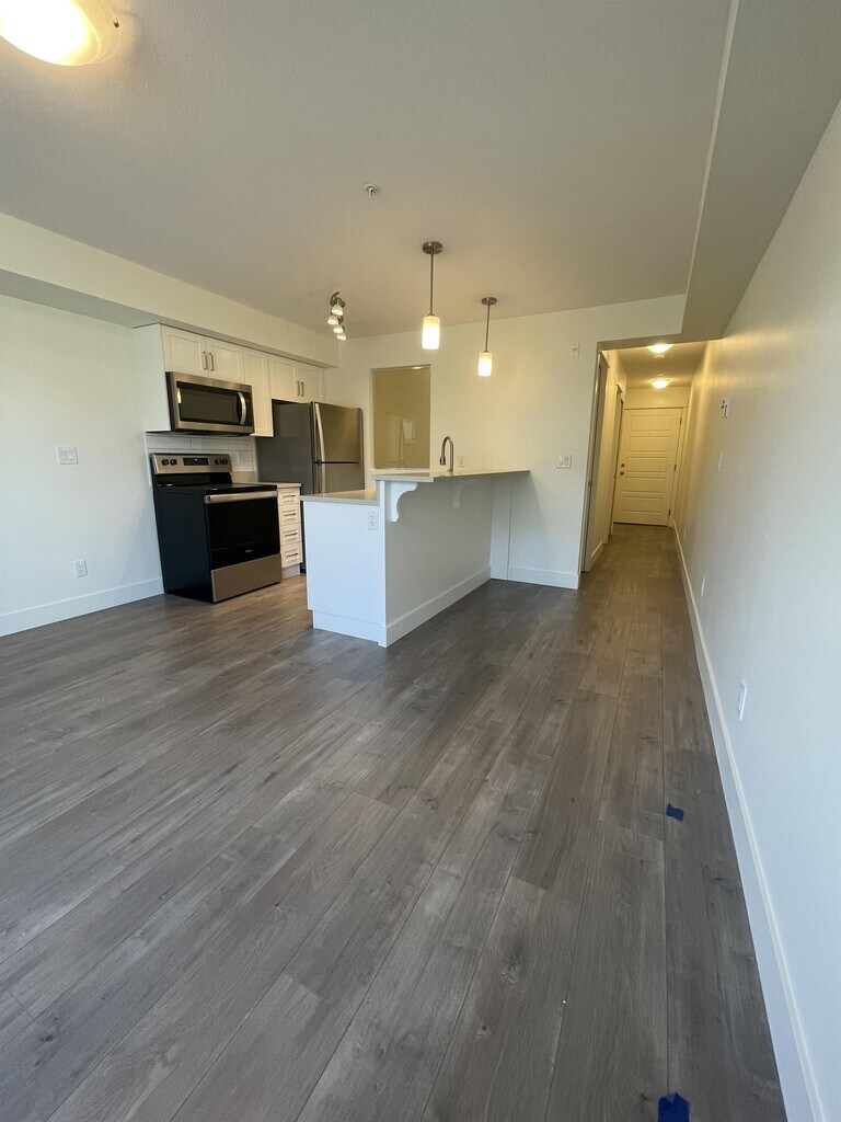 ** RENT NEGOTIABLE FOR LONG TERM TENANCIES** This bachelors suite boasts all new stainless steal appliances, bright hardwood flooring, large glass sliding door with own deck and in unit laundry! Your quick access to Hwy 1 provides all kinds of shopping, walking, hiking & lakes within a 30 minute drive. You are central to all that High Street has to offer like the VIP theatre, Milestones, Starbucks & tons of other food, shopping and grocery stores for added convenience as well as the Fraser Valley Auto Mall and easy access to public transit. This unit is ready to go right away for someone looking for bright, airy and central home! Suite Features: - 1 Bedroom - 1 Bathroom - In unit laundry - Underground parking stall - Underground storage locker - All new stainless appliances - Dishwasher - Private deck - Pets negotiable Lease terms: 1 year lease and month to month thereafter, pets allowed. Marketed by Jayden Leonard, Property Manager Brookside Realty Ltd.