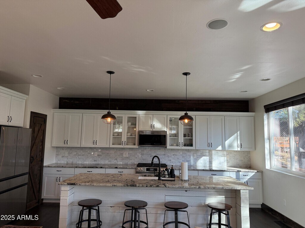 Discover your dream home in Flagstaff! This beautifully updated 3-bedroom,2-bathroom rental offers a stunning,modern kitchen featuring sleek granite countertops,a high-end gas stove,and a spacious island that seamlessly flows into the open,welcoming living areaperfect for entertaining or relaxing. Both bathrooms have been freshly redesigned with luxurious walk-in showers,and the expansive back patio provides breathtaking views of the surrounding forest,creating an ideal spot to unwind and enjoy nature right at your doorstep.