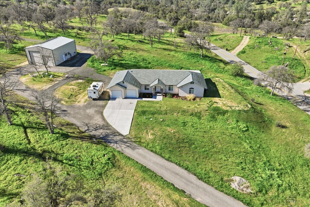 Welcome to your dream retreat in the heart of Coarsegold, CA! This stunning 2022 custom-built home is nestled on a generous 3-acre lot, offering modern luxury and energy efficiency. The open floor plan seamlessly blends sophisticated design with comfortable living space, perfect for family gatherings and entertaining. Boasting cutting-edge sustainability features, the property includes state-of-the-art solar panels not only on the house but also powering the fully equipped 30x46 workshop—a hobbyist's paradise with an overhead loft and convenient bathroom. Enjoy peace of mind with a Tesla Backup Battery and EV Charger ready to support your sustainable lifestyle. Expansive windows let natural light fill every corner, providing breathtaking vistas of serene landscapes surrounding your private haven. Whether you savor sunsets from your spacious patio or explore local attractions like Yosemite National Park close by, this property perfectly balances secluded tranquility with accessibility. With ample opportunity to expand or customize based on your vision, this Coarsegold gem provides quality craftsmanship paired with eco-friendly innovation. Don’t miss out—this one-of-a-kind sanctuary offers you sustainable sophistication at its finest
