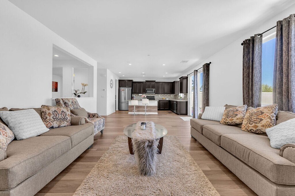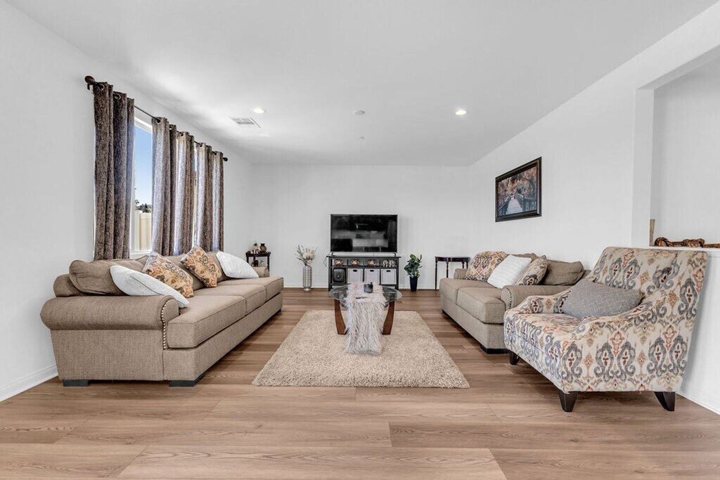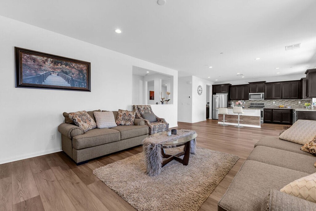6 Month - 1 Year or Lease To Own! Welcome to 30536 Astoria Lane, a spacious 5-bedroom, 2.5-bathroom home located in the highly desirable Spencer’s Crossing community of Murrieta. This well-designed property offers a flexible layout, featuring a downstairs flex room with a walk-in closet that can be used as a home office or optional fifth bedroom. The open-concept floorplan includes wood laminate flooring, a formal dining area, an office nook, and a large living room. The kitchen is complete with granite countertops, a center island, stainless steel appliances including a gas oven, microwave, dishwasher, and refrigerator, plus a walk-in pantry and built-in coffee bar. Upstairs you’ll find a large loft, a laundry room with hookups and cabinetry, and four additional bedrooms, each with a walk-in closet. The primary suite includes a soaking tub, separate shower, dual sinks, and a massive walk-in closet. The backyard features a concrete patio, garden retaining wall, no rear neighbors, and peekaboo mountain views. Spencer’s Crossing offers community amenities such as sports parks, walking trails, and playgrounds, making this a fantastic opportunity in one of Murrieta’s top neighborhoods.