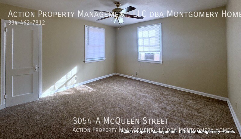 3054-B McQueen Street is a large 2 bedroom apartment with 1 bathroom. The large kitchen includes a refrigerator and a stove and has lot of counter top space. I The 2 bedrooms are spacious and have great closet space. This apartment also features new carpeting throughout the bedrooms, hallway, and living room. Its location makes it very convenient to shopping, schools, parks, and even the interstate if you need to get across town. Please call Action Property Management, LLC dba Montgomery Homes at for more information. If this property does not meet your needs please visit our website at to view more of our listings. Brick Exterior Central A/C Pets Welcome *Restrictions Apply Stove Washer & Dryer Connections