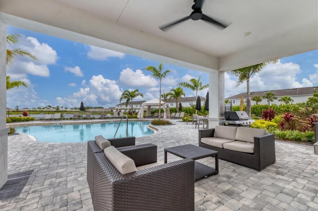 One or more photo(s) has been virtually staged. This brand-new townhome offers 1,373 square feet of refined living with 3 bedrooms,2.5 baths,and an attached one-car garage. A welcoming front porch opens to a well designed floor plan,featuring a spacious great room and a modern kitchen built for entertaining and everyday comfort. The kitchen highlights stainless steel appliances,custom cabinetry,an oversized island,and a generous pantry,while the open layout connects seamlessly to the great room and private outdoor patio. A convenient half bath and under-stair storage complete the first level. Upstairs,the primary-suite provides a walk-in closet and an ensuite-bath with dual vanities,premium tile,and contemporary fixtures. Two additional bedrooms share a second full bath with tub and designer details. The upstairs laundry adds everyday practicality and has been owner-equipped with extra shelving. Abundant storage throughout the home includes a linen closet,three bedroom closets,a pantry,and versatile under-stair space. Built-to-code-2025 craftsmanship ensures quality in every detail with efficient construction,abundant natural light,and stylish finishes that elevate the home above standard rentals. Blinds and appliances are included for a seamless move-in,while maintenance-free living allows residents to enjoy their home without added responsibility. Easy access to the beautiful resort-style pool with none of the responsibilities of owner maintenance. Beyond the neighborhood,Lakewood Ranch offers 10,000 acres of lakes,150 miles of trails,and 25+ villages filled with dining,shopping,and entertainment. Downtown Sarasota,Siesta Key,Parrish and Tampa are all within easy reach,making this location highly desirable. Excellent schools,including the new Lake Manatee K-8 opening this year,has enhanced the community's long-term appeal. This brand-new townhome presents a rare leasing opportunity that blends untouched luxury,convenience,and lifestyle in one of Florida's most sought-after communities,Lakewood Ranch. MLS# A4664661