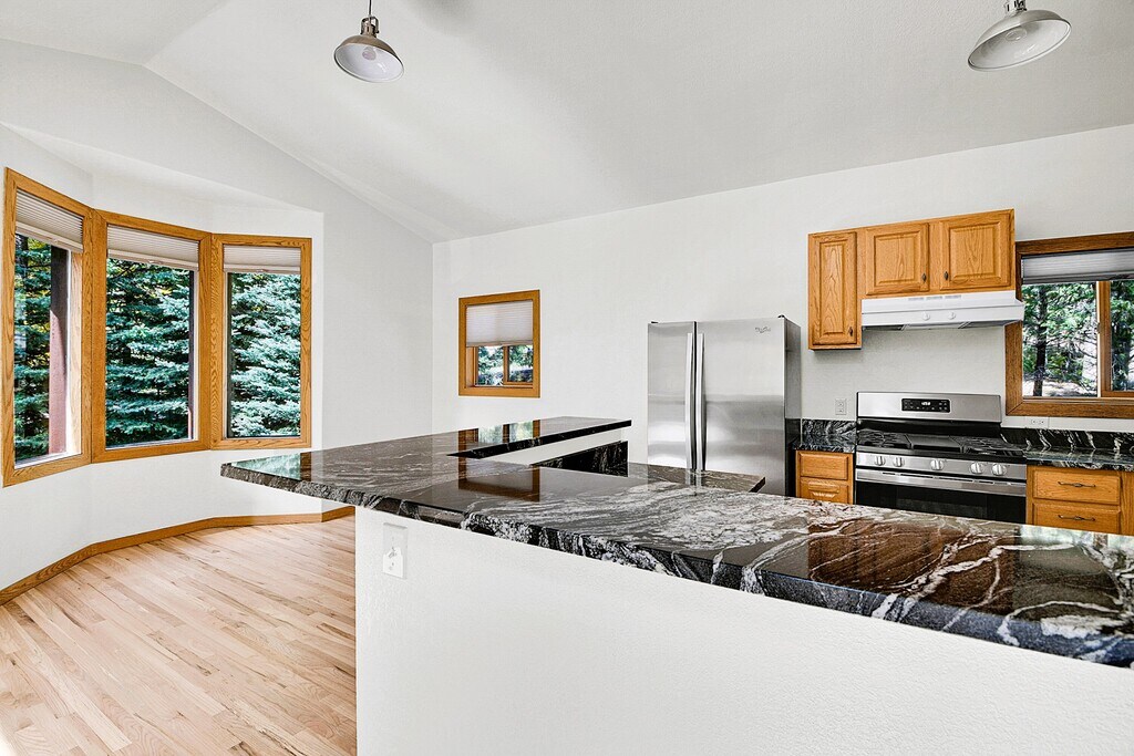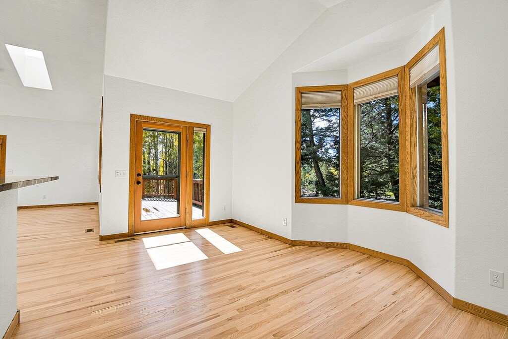 LIVE THE MOUNTAIN LIFESTYLE! Welcome to this beautifully renovated 3-bedroom, 2.5-bath home nestled among the trees in the desirable Kings Valley neighborhood. Surrounded by nature and abundant sunlight, this home offers the perfect balance of privacy and convenience. Step inside to a warm and inviting living space featuring a cozy gas fireplace and large windows that frame serene forest views. The updated kitchen and open layout create a comfortable flow for both everyday living and entertaining. Step outside onto the wraparound deck, where you can enjoy your morning coffee or evening sunsets while taking in the tranquil woodland scenery. The spacious primary suite is a true retreat, complete with dual sinks, a walk-in shower, and an oversized soaking tub for ultimate relaxation. Two additional bedrooms and a second full bath provide plenty of space for family, guests, or a home office. A two-car garage and a newly paved driveway add convenience and curb appeal. Despite its peaceful setting, the home is just 3 minutes from Highway 285—offering a quick and easy commute to Denver or the mountain towns beyond. Outdoor enthusiasts will love the proximity to nearby hiking and biking trails, with world-class skiing just a short drive away. No smoking and no cats, please. One dog may be considered with approval. Visit the Mountain Haven Property Management website to fill out an application and schedule a showing.