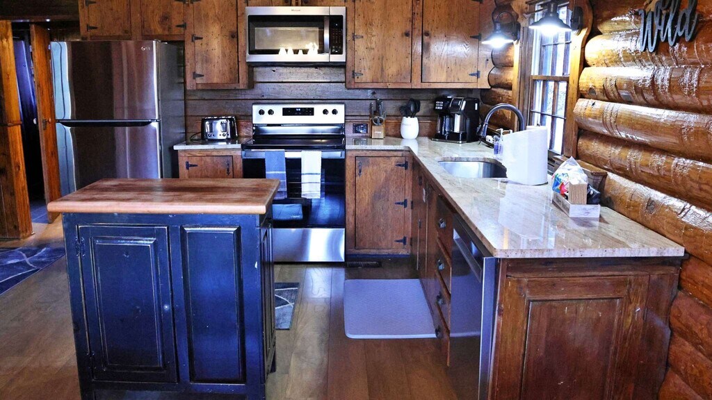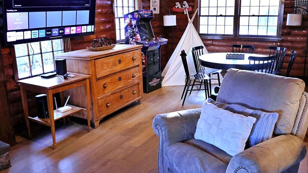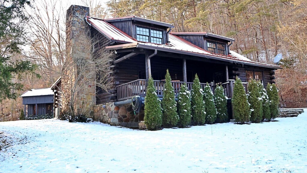 This home is centrally located in Sevier County just 20 minutes or less to Sevierville, Pigeon Forge and Gatlinburg Spread across a generous layout, the main house boasts three bedrooms and three bathrooms with an open living space and seating for 8 around the electric fireplace. This flows into the kitchen and dining area with two tables and space for up to 13 people. The kitchen has stainless steel appliances, granite counter tops and natural wood cabinets Walk out the front door, past the hot tub, fire pit and outdoor seating area to find the one bedroom one bath carriage house with. Situated on five acres this homes is a unique blend of space and convenience This unit is furnished and the furnishings remain with the property and are the property of the owner. If pieces are broken or become unusable they will not be replaced. This is a non smoking home.