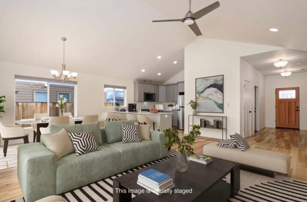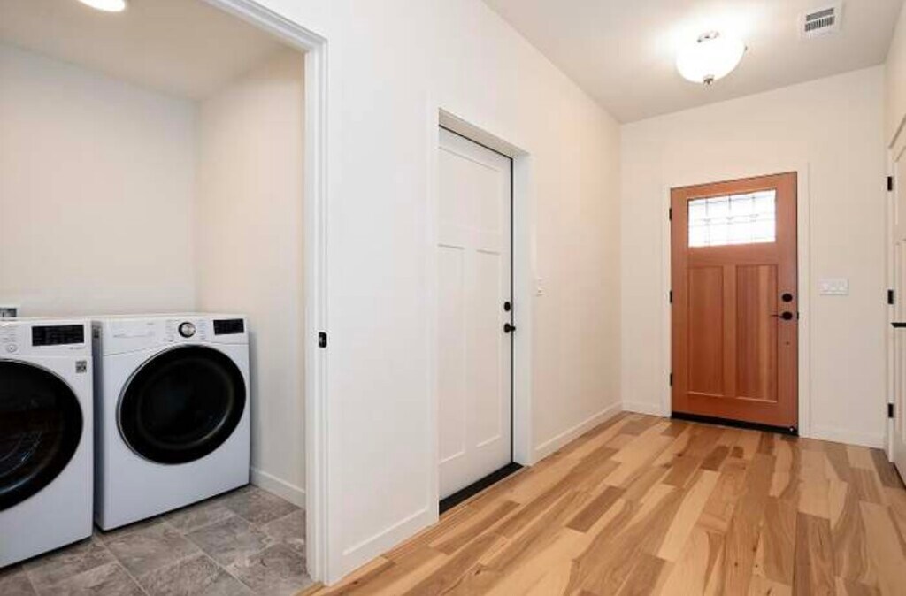 This bright, beautiful, energy-efficient, newer craftsman style home offers modern living with an open functional floorplan. Built by Suncrest Homes in 2022, it features 1,232 square feet of well-designed space, including 2 bedrooms and 2 full bathrooms, all on a single level. There is a one-car attached garage and a level .17-acre lot that comes fully fenced with low maintenance drought tolerant landscaping in the front and backyard. Inside, the spacious entry hall welcomes you into the airy ambience of vaulted ceilings, beautiful hickory wood floors, stylish quartz countertops in the kitchen, and ceiling fans in living and bedrooms. The primary suite includes a tiled bathroom and walk-in closet, while a designated laundry area comes with a washer and dryer. This Earth Advantage Certified built home boasts high energy efficiency and low utility bill records that show it. Conveniently located within walking distance to downtown Talent, and close to I-5, Ashland, and Medford. Criteria: 675 or higher credit score, verifiable income history, good work and housing references, and background check required. 12 month lease. No smoking or vaping on property.