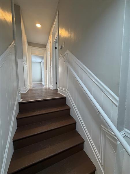 Beautifully updated 2-bedroom apartment available for rent! Rent INCLUDES water, trash, and sewage—plus lawn care is handled for you. The apartment can be accessed via exterior side steps or through a lower entrance leading to the common hallway and interior stairs. Inside Unit 2, you’ll find an open, eat-in kitchen featuring a gas stove, microwave, refrigerator, and a large pantry, with plenty of room for a dining table. Down the hall are two generously sized bedrooms and a spacious living room, all equipped with ceiling fans. High ceilings and abundant natural light enhance the space. The full bathroom offers a tub/shower combination and convenient linen storage. A shared basement is accessible from the main-level common hallway and provides storage space. Each unit has its own washer and dryer hookups in the basement as well (washer/dryer not included). Parking is on-street. Tenant is responsible for gas and electric. One pet may be considered based on size and breed, with an additional fee.