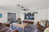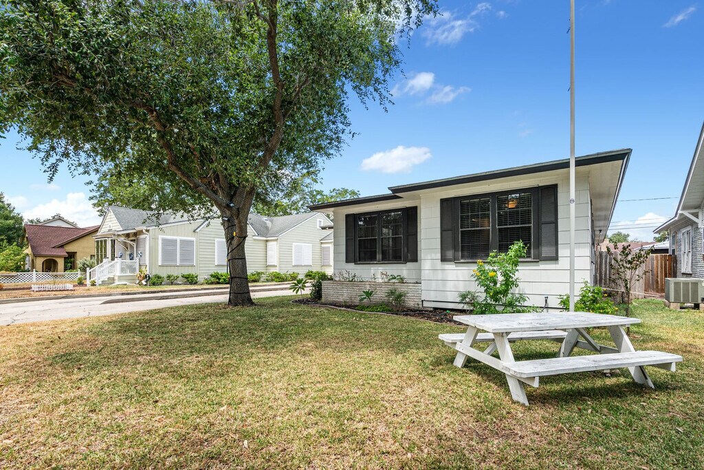 Feel at home in this lovingly updated 3-bedroom, 2-bath midcentury home in the desirable Del Mar neighborhood of Corpus Christi. Built in 1956, this gem sleeps up to 6 guests. This home features a fully stocked kitchen with all the amenities and cooking supplies needed to prepare delicious meals. The warm, cozy living spaces retain their midcentury character with thoughtful updates throughout. Enjoy ample parking for up to 3 vehicles in the long private driveway. Located in one of Corpus Christi’s most sought-after neighborhoods, this home is just minutes from Cole Park, Downtown Corpus Christi, the bayfront, dining, and local attractions. Del Mar offers a quiet, tree-lined setting with a welcoming, family-friendly atmosphere, perfect for morning walks, bike rides, and enjoying the coastal breeze. This home is located in a quiet, family-friendly neighborhood. [SI]
