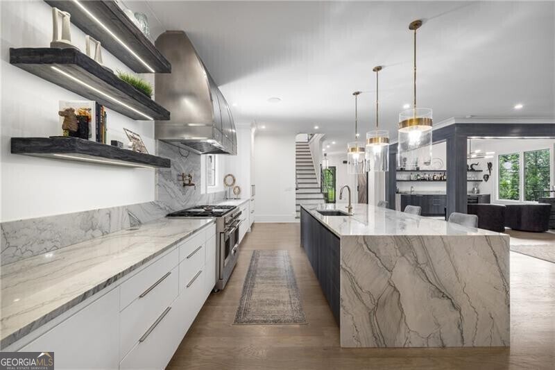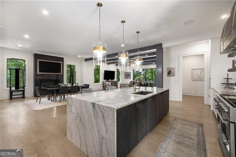 Experience luxury living in the heart of Buckhead near Chastain Park! This newer construction home offers an extraordinary open-concept design perfect for everyday living and entertaining. The gourmet kitchen features a dramatic waterfall-edge quartz island, hidden outlets, custom cabinetry, and high-end appliances-including two dishwashers and built-in refrigerator drawers. The main level includes a stylish built-in bar with an ice maker and wine cooler, a home office, and a private guest suite. Enjoy seamless indoor-outdoor living with multiple covered patios and fireplaces, plus direct access to the scenic Blue Heron Nature Preserve and its private walking trails. The oversized primary suite offers a sitting area, private balcony with fireplace, spa-like bath, and two walk-in closets. Additional perks include spacious secondary en-suites, a media/game room, home gym, wine cellar, and a finished terrace level with custom bar. This home combines high-end finishes, thoughtful design, and a prime location-offering both comfort and convenience. Lease includes previously permitted pool plans, or enjoy the large backyard as-is. Don't miss this rare opportunity to lease one of Buckhead's most stunning homes!