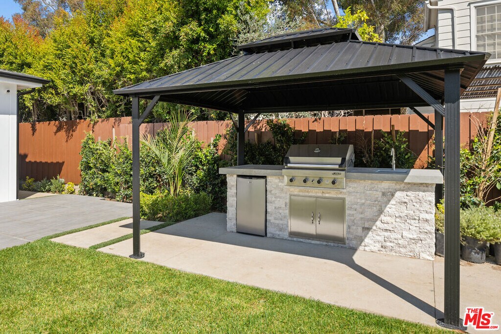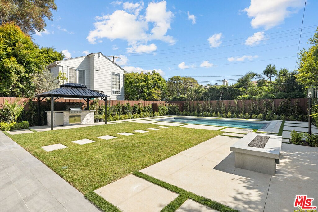 Presenting an exquisite brand-new construction Modern Farmhouse home designed by architect Charles A. Samson. In the heart of Brentwood, this extraordinary contemporary estate offers the finest in luxury living with 5 spacious bedrooms, each featuring its own ensuite bath and walk-in closets. This home spans a generous 6226 sq ft of living space on a 8250 sq ft lot. Designed for comfort and elegance, every detail of this property has been carefully considered to create a sophisticated and private sanctuary. Perfect for entertaining, the expansive formal living and dining rooms boast soaring ceilings, large windows, and refined finishes. Multiple marble fireplaces throughout the home provide warmth and ambiance in both common areas and private retreats. The chef's kitchen has custom cabinetry, Carrera quartz countertops, a walk-in pantry and features top-of-the-line appliances including a SubZero Refrigerator, Wolfe 8-Burner Range, an oversized island, and ample prep space. The kitchen space is open to a large family room, where there is a seamless transition through an extra wide pocket window doors to the backyard for year-round enjoyment of the gorgeous covered pool and spa, making this the ultimate space for relaxing and entertaining around the fire pit. For alfresco dining and entertaining, enjoy a state-of-the-art outdoor kitchen, covered Gazebo complete with a BBQ and refrigerator. The lower level features an expansive recreation room perfect for casual living or creating additional spaces for play. An extra-large movie theatre room offers high definition projector and surround sound, the perfect setting for movie nights or private screenings. The versatile downstairs also includes a dedicated poker or pool room. A beautifully designed 100 bottle wine wall adds both functionality and a touch of sophistication to the lower level. There is a 2 car garage with a back up refrigerator, built-ins and plenty of additional storage. This home is situated in one of the most sought-after neighborhoods in Los Angeles -Brentwood where luxury, convenience, and lifestyle converge. Close proximity to Brentwood Farmers Market, Brentwood Country Mart, San Vicente Boulevard's boutique shops and fine dining. Enjoy the best of both worlds: a peaceful, private retreat just moments away from the vibrant amenities and culture Brentwood has to offer. MLS# 25568485