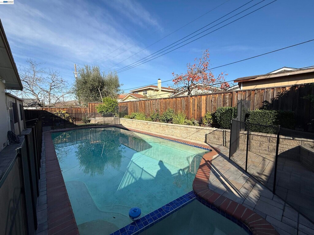 Single story home in great Milpitas neighborhood. Home has updated kitchen with GE stainless steel appliances,granite counters,new copper plumbing and tile floors. Formal Living room,dining area,and separate step down family room. There is also a bonus sunroom not included in the square footage. Recessed lights in Kitchen and Living areas,ceiling speakers in Living and bedroom. Flower plants Sparkling fully fenced pool/jacuzzi and beautiful hardscape backyard.3 spacious bedrooms. Master bedroom suite with master bath. Central A/C and Central Heating. Excellent location with easy access to schools,park,Hwy 880/680,and public transit including BART. Award winning Alexander Rose Elementary School (tenant to verify with Milpitas School District) Apply with RentSpree
