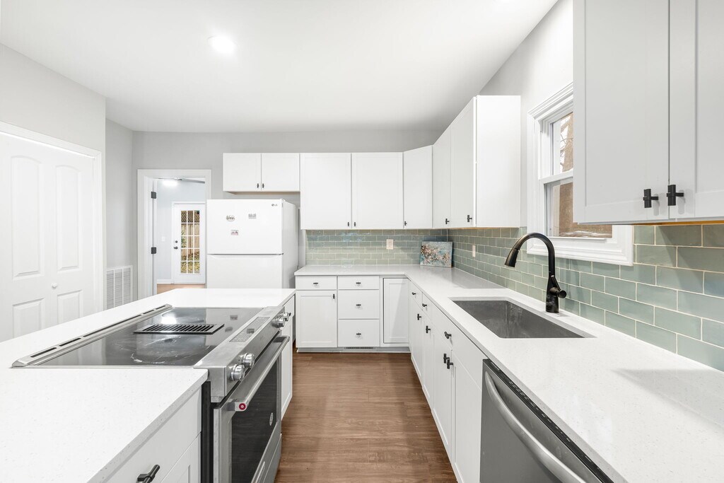 Discover your new home in the heart of Belmont, NC. This beautifully renovated 3-bedroom, 2-bathroom residence offers 1,100 sqft of modern living space, ideal for comfortable family life or entertaining. Upon entering, one is greeted by an inviting, spacious, and open-concept floor plan that seamlessly connects the living, dining, and kitchen areas. Recent renovations ensure a fresh and contemporary feel throughout the home, complemented by elegant hardwood flooring in the main living spaces and plush carpeting in the bedrooms, providing both style and comfort. This thoughtfully designed home offers the convenience of single-level living. The kitchen, a central feature of the open layout, is perfectly suited for both everyday meals and social gatherings, fostering an inclusive atmosphere. One of the most compelling attributes of this property is its exceptional location. Situated directly across from Reid Park, residents benefit from immediate access to its diverse amenities, which include a play unit, a basketball court, and a baseball field. Furthermore, the home is just a short distance from downtown Belmont, where a vibrant array of local shops, diverse restaurants, and charming boutiques await exploration. For those who appreciate the outdoors, Rocky Branch Park and Davis Park are easily accessible, presenting ample opportunities for mountain biking, hiking, and immersing oneself in nature. For moments of relaxation and outdoor enjoyment, a private back porch provides an ideal setting for grilling, savoring morning coffee, or simply unwinding in a tranquil environment. The property also boasts easy access to major highways, ensuring that commuting is a convenient and straightforward experience. Reach out to schedule a showing today!