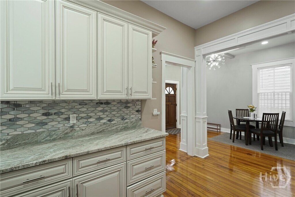 Beautifully renovated and fully furnished 3 bed/3 bath home in the heart of Midtown Savannah! Featuring tall ceilings and hardwood floors throughout,this home offers historic elegance with modern updates. As you enter the property,you're greeted by spacious living room with a coffered ceiling and a breakfast area. The property also offers a well-equipped kitchen with stainless steel appliances,granite countertops,new cabinets,and a tile backsplash. The main floor includes a bedroom with a full bath across the hall,while upstairs boasts two large bedrooms with private,beautifully updated bathrooms. Enjoy the fenced backyard with a back porch,perfect for relaxing. In-unit laundry included. Prime location near the vibrant Starland District,hospitals,downtown Savannah,SCAD campus and steps from some of the city's top restaurants,bars,and entertainment. Home is offered for 3+ month lease with longer term options also available. Internet included! No pets.