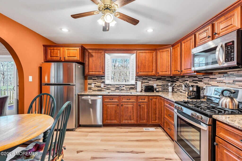 Welcome to this beautifully decorated and fully furnished 3-bedroom,3-bath home set on over 1 acre of private,wooded property in desirable Tinton Falls.This spacious home offers comfortable living with thoughtfully designed interiors and flexible rental options: annually,short-term,monthly or weekly. The main living areas are bright and inviting,while the finished walkout basement provides additional living space with direct outdoor access--perfect for guests,a home office,or entertainment. Step outside and enjoy the deck,which features a retractable awning,ideal for relaxing or entertaining while overlooking the peaceful wooded surroundings. Additional features include a circular driveway for easy access,ample parking,and a one-car garage. Conveniently located just minutes from the Garden State Parkway,this home offers easy commuting and is only a 15-20 minute drive to Jersey Shore beaches. Close proximity to the upcoming Netflix studio development adds even more appeal to this prime location.