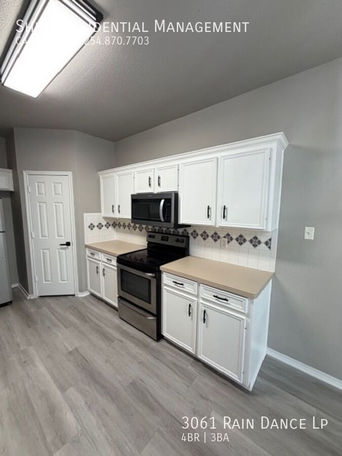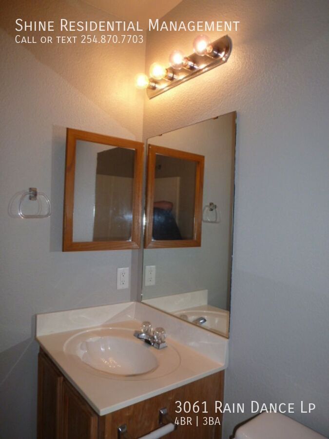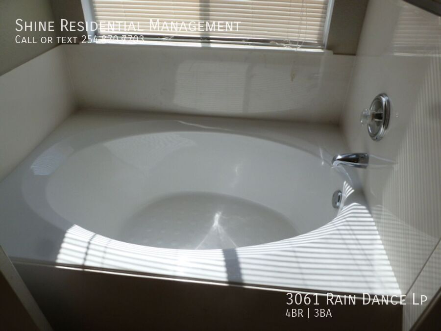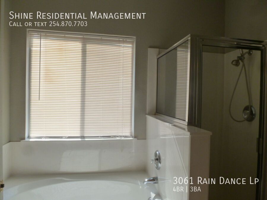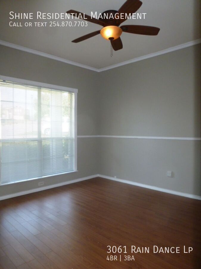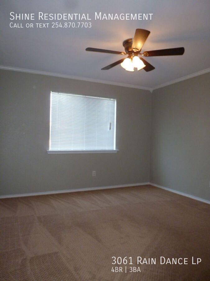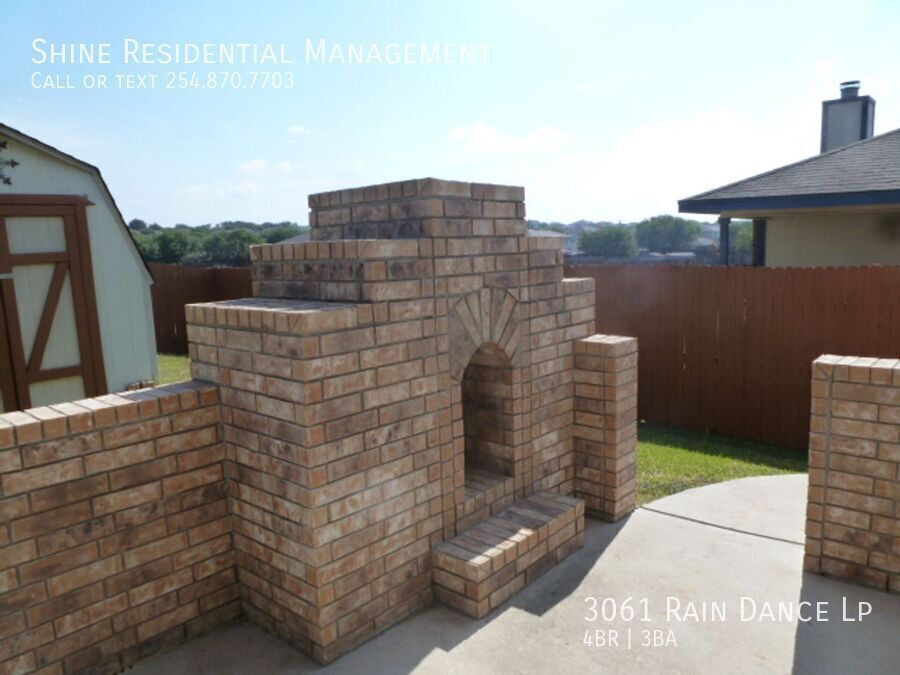 Welcome to 3061 Rain Dance Lp, a stunning 4-bedroom, 2.5-bathroom home located in the vibrant community of Harker Heights, TX. This home is a perfect blend of style and comfort, featuring a spacious layout with hardwood floors and climate control for year-round comfort. The kitchen is a chef's dream, equipped with a dishwasher, microwave, refrigerator, and stove/oven, along with a pantry for extra storage. The living area is accentuated by a cozy fireplace and large windows with coverings, allowing for plenty of natural light. The bedrooms are generously sized, each with walk-in closets and ceiling fans. The master suite boasts a double sink vanity and a linen closet. Additional amenities include a washer/dryer, laundry hookup, and ample storage space. The exterior of the home is just as impressive, with a fenced yard, patio, balcony, and deck, perfect for outdoor entertaining. Garage parking is available, and pets are considered on a case-by-case basis. Experience the convenience and comfort of 3061 Rain Dance Lp, where every detail has been thoughtfully designed for modern living. Air Conditioner Climate Control Disposal Double Sink Vanity Heat Electric Laundry Hookup Linen Closet Mirrors Pet Friendly/ Case By Case Storage Space Walk In Closets Washer/Dryer Window Coverings