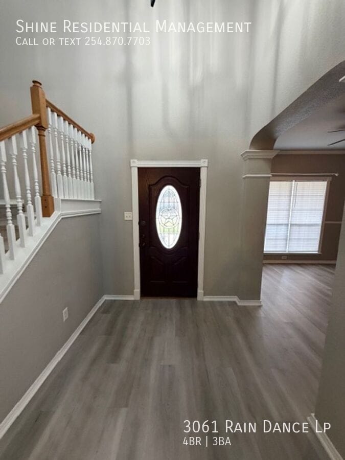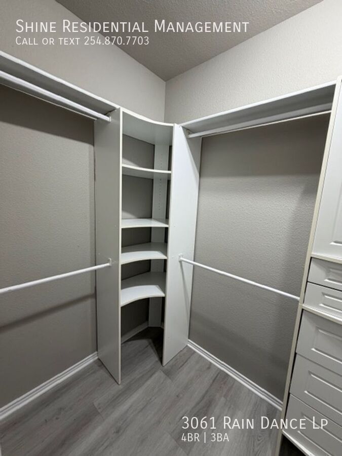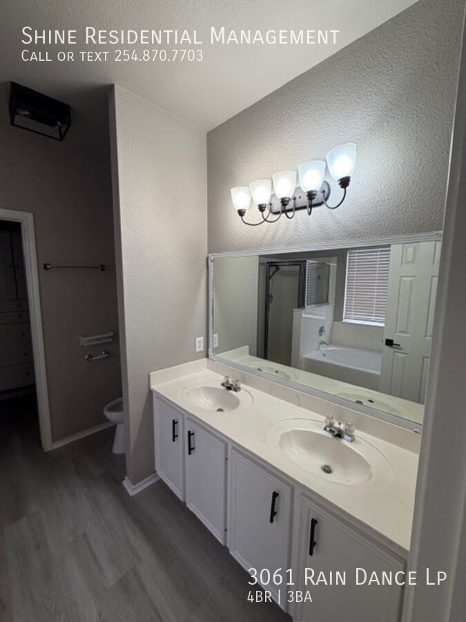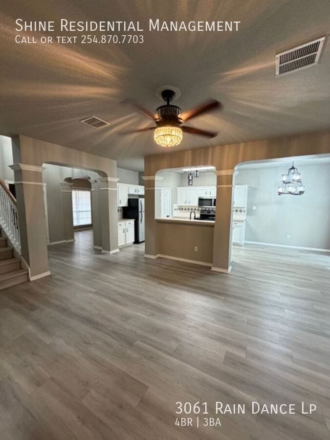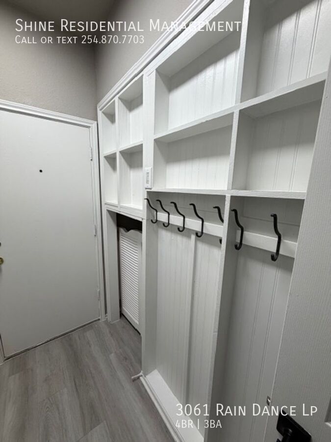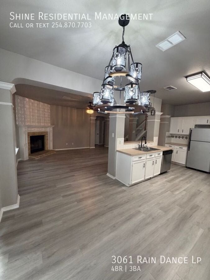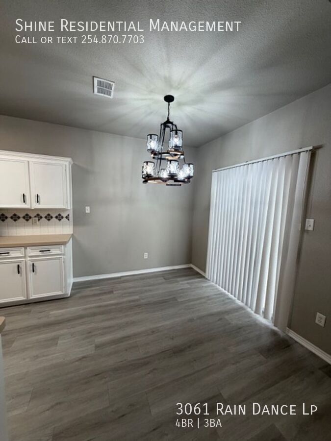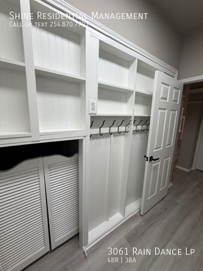 Welcome to 3061 Rain Dance Lp, a stunning 4-bedroom, 2.5-bathroom home located in the vibrant community of Harker Heights, TX. This home is a perfect blend of style and comfort, featuring a spacious layout with hardwood floors and climate control for year-round comfort. The kitchen is a chef's dream, equipped with a dishwasher, microwave, refrigerator, and stove/oven, along with a pantry for extra storage. The living area is accentuated by a cozy fireplace and large windows with coverings, allowing for plenty of natural light. The bedrooms are generously sized, each with walk-in closets and ceiling fans. The master suite boasts a double sink vanity and a linen closet. Additional amenities include a washer/dryer, laundry hookup, and ample storage space. The exterior of the home is just as impressive, with a fenced yard, patio, balcony, and deck, perfect for outdoor entertaining. Garage parking is available, and pets are considered on a case-by-case basis. Experience the convenience and comfort of 3061 Rain Dance Lp, where every detail has been thoughtfully designed for modern living. Air Conditioner Climate Control Disposal Double Sink Vanity Heat Electric Laundry Hookup Linen Closet Mirrors Pet Friendly/ Case By Case Storage Space Walk In Closets Washer/Dryer Window Coverings