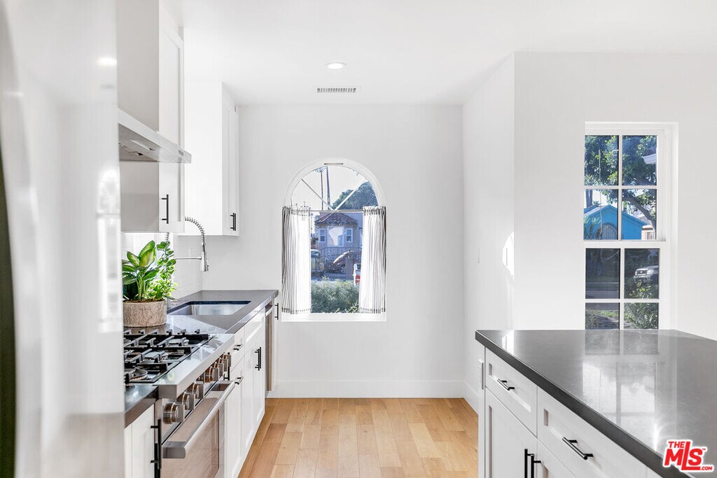 Welcome home! This bright and beautifully updated 3-bedroom, 2-bath Spanish-style gem in the heart of West Adams, where character meets comfort and convenience, could be YOURS!Step through the front door and you're greeted by an arched front window that pours sunlight across the open layout. The spacious living room flows into a dining area and a thoughtfully designed kitchen with a large island, gas stove, and plenty of cabinet and closet space. Overhead LED lighting keeps everything fresh and bright, and curtain rods are already installed, so moving in feels easy.Each bedroom has great natural light and flexibility for guests, an office, or creative space. The primary suite offers a walk-in closet and en suite bathroom with a walk-in shower, while the second bath has a full tub. The perfect place for winding down at the end of the day...Out back, you'll find a private yard that feels like your own little oasis. The space for lounging, gardening, or entertaining. There is an occupied ADU at the rear of the property, but the layout gives you plenty of privacy and separation, so you'll still feel like you're all on your own. There's also driveway parking for up to two cars, so you can skip the street-parking stress.Located in vibrant West Adams, you're surrounded by local favorites like Highly Likely Caf, Mizlala, Tartine, and Johnny's West Adams. Easy access to the 10 makes commuting to Culver City, Mid-City, or DTLA a breeze, while weekends are best spent exploring the neighborhood's growing mix of art, food, and community vibes. MLS# 25617821