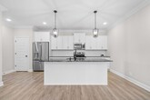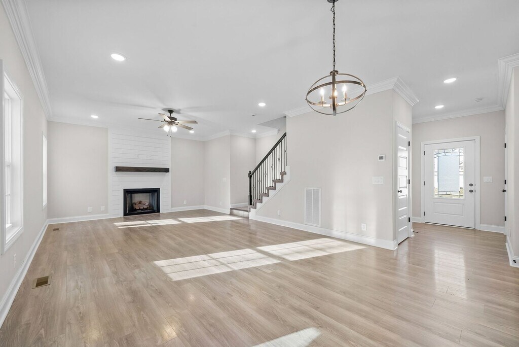 The open floor plan is accentuated by beautiful lighting and fixtures, creating a welcoming atmosphere along with the formal living room boasting an inviting fireplace for those chilly nights. The heart of the home, the kitchen, is equipped with a functional island and sleek stainless steel appliances. Just off the kitchen, you'll find a covered deck overlooking a fenced-in backyard, perfect for outdoor enjoyment. The home features an extra-large bonus room, perfect for a variety of uses. The primary suite is a true retreat, offering extra space, a private bath, and a walk-in closet. A cozy reading area at the top of the stairs adds a charming touch to this beautiful home. Dog lovers will appreciate the welcoming policy for two dogs of any size! Pet fees and restrictions apply, inquiry today.