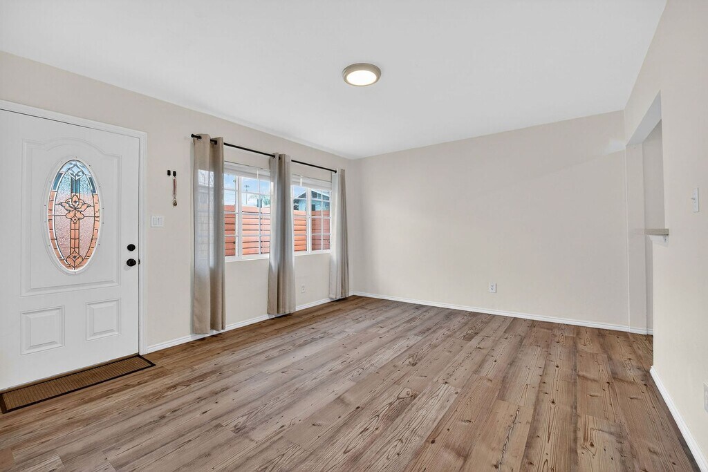 Now available is this nicely upgraded 2 bedroom, 1 bathroom unit in the Logan Heights area of San Diego. Conveniently located just minutes from Downtown, Barrio Logan, shopping, restaurants, parks, and major freeways, making commuting and daily errands easy. Short walk to/from MTS Orange Line Trolley Station. The unit offers a comfortable layout, good natural light, and practical finishes throughout—perfect for anyone looking for a clean, well-located place to call home. Unit features: -Two comfortable and spacious bedrooms, with ample closet space -One full bathroom with shower over tub -Bright living area with plenty of natural light -Kitchen is remodeled with ample cabinet and counter space, includes refrigerator and stove/oven -Fresh interior paint -Easy access to public transportation and freeways -Close to grocery stores, restaurants, and parks -Connections for washer/dryer Walkable neighborhood. Great central location with quick access to Downtown San Diego, Naval Base San Diego, and all the local conveniences in the surrounding neighborhoods. Lease Terms: -One year lease, available for move 2/15 -Rent: $2,650/month -Security deposit: $2,650 -Tenants pay for SDGE, water included in rent -Renter’s insurance required (minimum $100,000 liability coverage) -No smoking on premise -No pets -Parking: Ample off street parking Private Driveway, can fit up to 3 cars Requirements for this home: - Household income minimum 2.5x rent - Minimum 660 credit - No Evictions, No Bills In Collections 3D Tour: