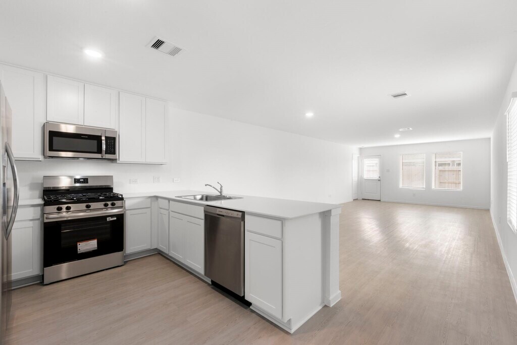 Welcome to your new 4BR/2Bath haven in the much sought after Sunterra master planned community complete with crystal clear lagoon,recreation and fitness center,club house,walking trails and community Park. The split plan home on a corner lot features an open concept living space with stainless steel appliances in the kitchen. The spacious primary suite features an ensuite bathroom with an upgraded sink vanity. Additional upgrades include beautiful engineered wood flooring throughout common areas and 2" faux wood blinds throughout the home. Refrigerator,washer,dryer and yard sprinkler system all included. Easy access to 1-10,Grand Parkway,Katy Mills Mall and much more. Housing voucher tenants welcome. MLS# 14411702
