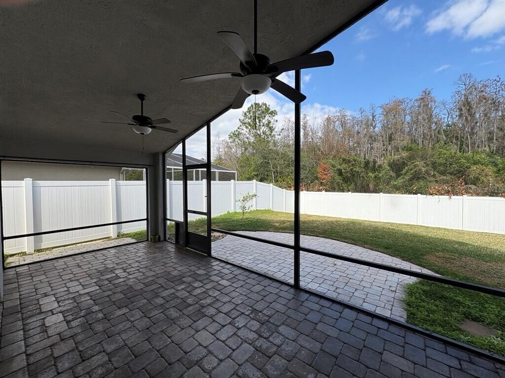 Welcome to this stunning 3 bedroom,2 bathroom home with a 2-car garage located in highly sought-after gated village of Meadow Pointe in Wesley Chapel. The home features luxury vinyl flooring and ceramic tile throughout,complemented by soaring high ceilings,ceiling fans,and a bright open floorplan that creates an inviting and spacious atmosphere. The kitchen is a dream,offering stainless steel appliances,abundant cabinetry,and plenty of space for cooking and entertaining. The primary bedroom serves as a private retreat with a large walk-in closet and an en-suite bathroom featuring both a garden soaking tub and a separate walk-in shower. Additional conveniences include a dedicated laundry room with utility sink,plus washer and dryer included for everyday ease. Glass sliders open to a screened-in patio,perfect for relaxing or entertaining while enjoying the Florida lifestyle. The fully fenced backyard provides privacy and plenty of outdoor space along with additional storage with a shed. This beautiful home blends comfort,style,and functionality ready for you to move in and enjoy. Located in the vibrant Meadow Pointe community,youll have access to amazing amenities,including three clubhouses with pools,tennis courts,sand volleyball,basketball courts,youth sports leagues,playgrounds,and walking trails. Families will love the convenience of A-rated schools within walking distance. The location also offers easy access to major roads,making it a breeze to reach Advent Health Hospital,Wiregrass Mall,Tampa Premium Outlets,I-75,and a variety of restaurants and shopping options. In addition to the advertised base rent,all residents are enrolled in the Resident Benefits Package (RBP) for $50.00/month which includes HVAC air filter delivery,credit building to help boost your credit score with timely rent payments,utility concierge service making utility connection a breeze during your move-in,and much more! More details upon application. Trash is included in rent. Pets welcome,2 max,no aggressive breeds. Vacant and Available now. MLS# TB8462801