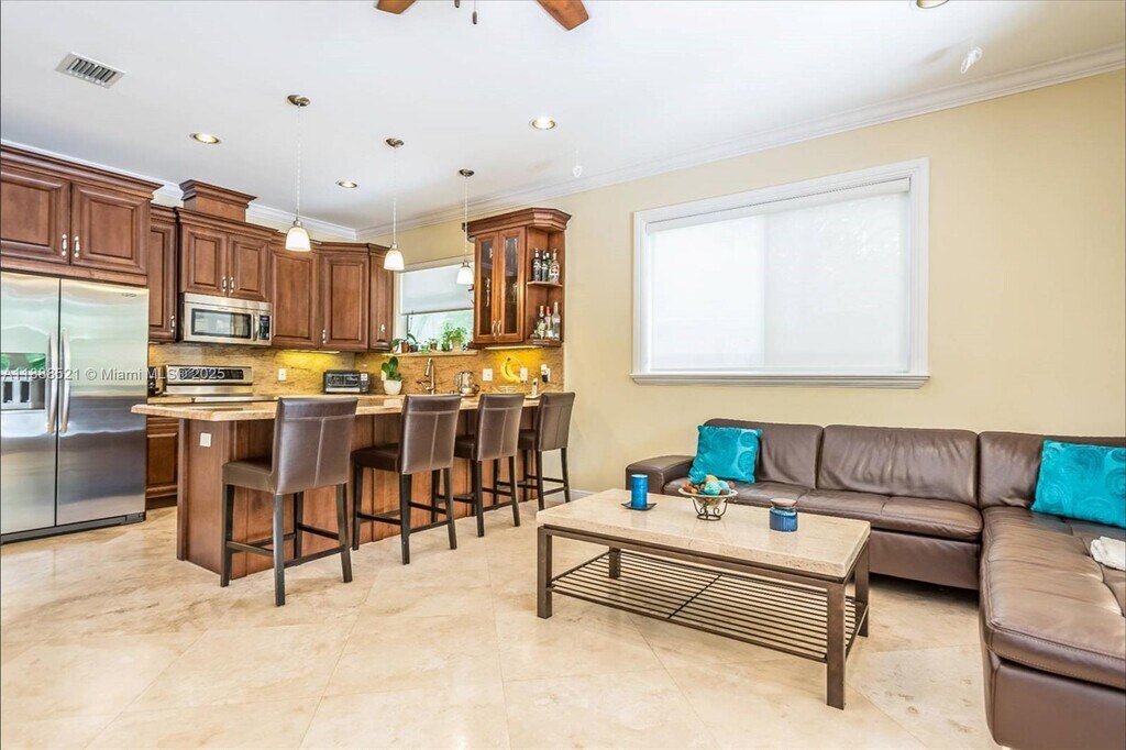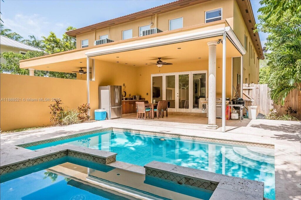 Step into this meticulously maintained newer-construction townhouse with a heated swimming pool. This residence features a spacious floor plan with a formal living room and an eat-in kitchen that flows seamlessly to outdoor entertainment and dining areas. Elegant travertine floors and vaulted ceilings enhance the home’s bright, open feel, while generous closets and custom window treatments add comfort and style. Enjoy a fabulous screened-in veranda with automated shades, perfect for year-round living, overlooking the sparkling pool and jacuzzi. The home is fully gated with impact glass and a one-car garage for peace of mind. Ideally located in the heart of Coconut Grove, just steps from Blanche Park and all the best dining, shopping, and lifestyle amenities.