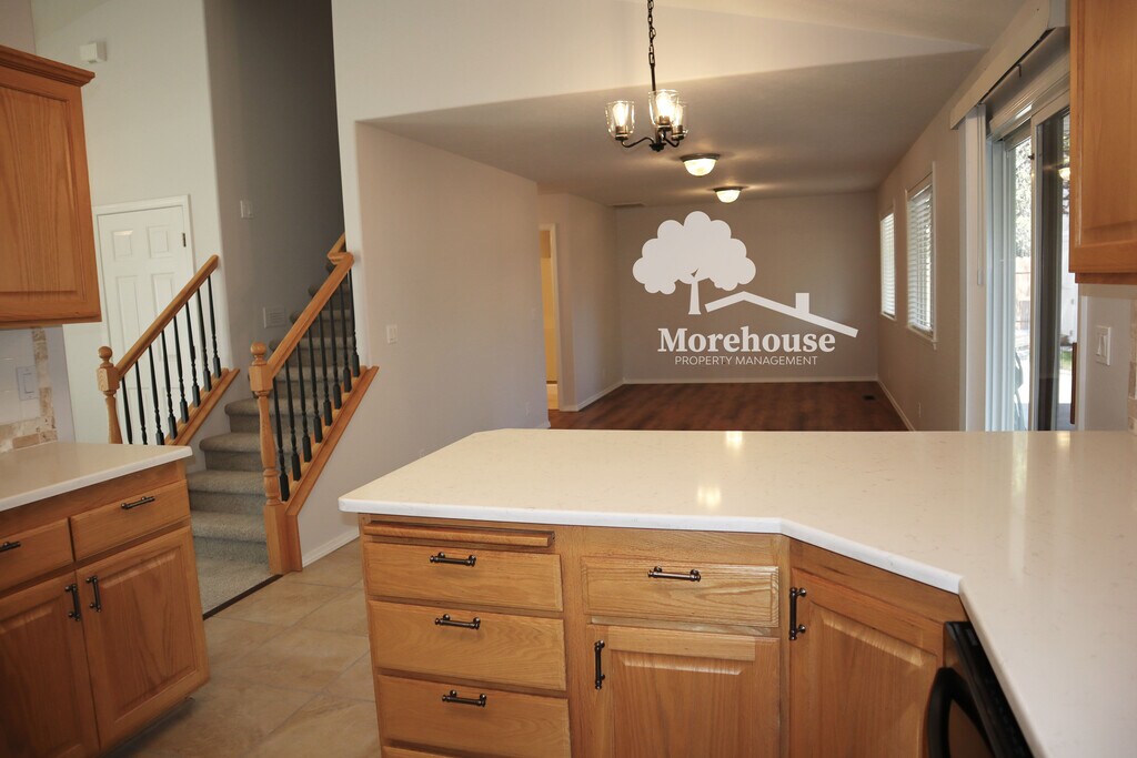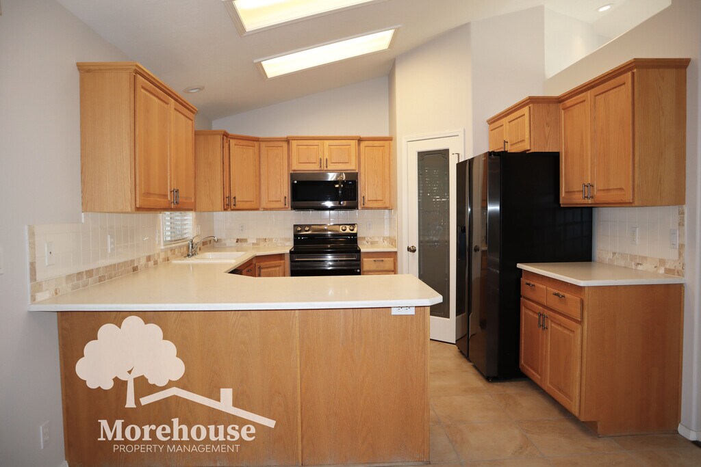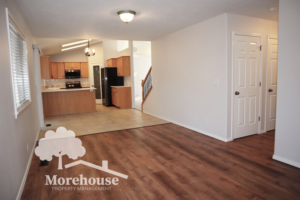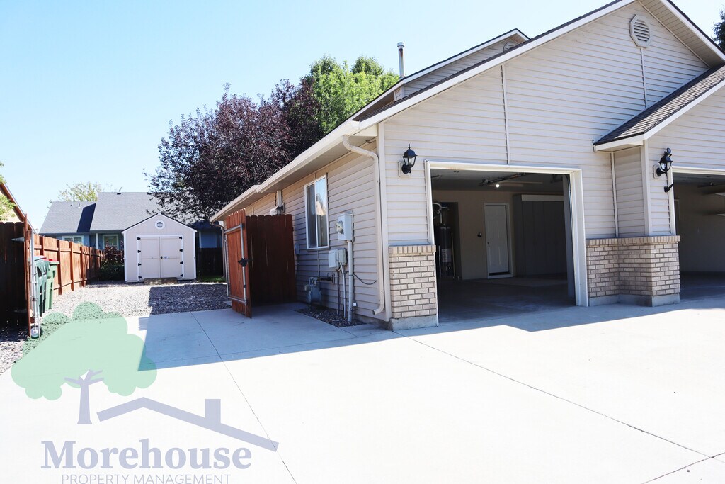 1,099 SQFT 4 CAR GARAGE + RV PARKING! This unique property offers a ton of space from RV Parking, to an oversized 4 car garage, to extra storage and shelving throughout the home! When entering this property you are greeted with high vaulted ceilings and a gas fireplace in the light and bright front living room. The kitchen includes quartz counter tops, ALL NEW APPLIANCES, pantry and breakfast bar. The second living space is off of the kitchen/dining making for a large great room. On the main level is a 4th bedroom, full bathroom and separate utility room. The utility room includes a large fold counter, shelving, deep sink, cabinet and washer/dryer hook up. The fenced backyard comes with a 16x10 storage shed, covered patio mature trees for shady summer days. WASHER AND DRYER INCLUDED! 12 Month Lease No Pets Tenant pays Water, Sewer, Trash, Electric and Gas Irrigation included in rent. $27 Application fee, per Applicant You can find the application and qualification criteria at wwwDOTmorehousepropertymanagementDOTcom Don't miss out on this unique home, Call today for your private showing! 208DASH377DASH1715 infoATmpmDASHteamDOTcom