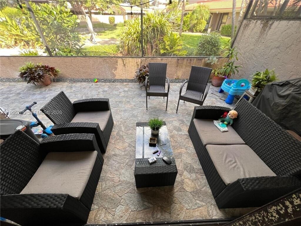 Stunning remodeled 3-bedroom townhome located in the highly desirable Townhouses of Emerald Hills neighborhood in Hollywood. This one-level home features an open-style modern kitchen with brand-new white shaker cabinets, a built-in wine cooler, quartz countertops, and stainless-steel Whirlpool appliances. Wood-look porcelain flooring runs throughout the kitchen, living room, and dining areas, while the bedrooms feature dark wood laminate flooring and a convenient Jack-and-Jill bathroom. The bathroom has been beautifully renovated with porcelain tile, quartz countertops, and new glass shower doors.Enjoy outdoor living with a private, screened-in back patio overlooking a tranquil garden view. The home also includes hurricane shutters throughout for added protection and peace of mind. MLS # A11995265