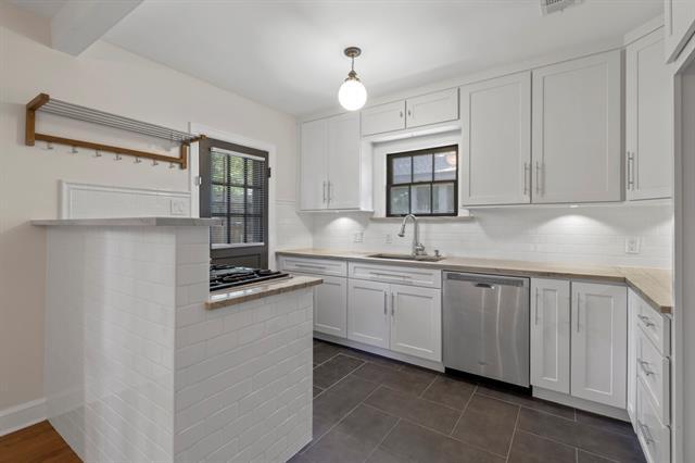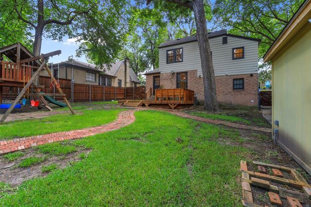 Charming 1930s home meticulously restored with modern amenities and classic charm. Every detail, from windows to door knobs, has been thoughtfully refurbished! Enjoy the contemporary comforts of today with the character of yesterday featuring 2 spacious bedrooms, 2 generous sized living areas, updated bathrooms, and a beautiful kitchen with modern functionality. This 4-split level home is completely updated with gorgeous wood floors, white macaubas quartzite counters, designer lights, and a wood burning fireplace. An inviting backyard deck offers an ideal spot for gatherings. Conveniently situated near Bishop Arts District, downtown Dallas, restaurants, and the upcoming Southern Gateway Deck Park. The swing set in the backyard has been removed.
