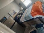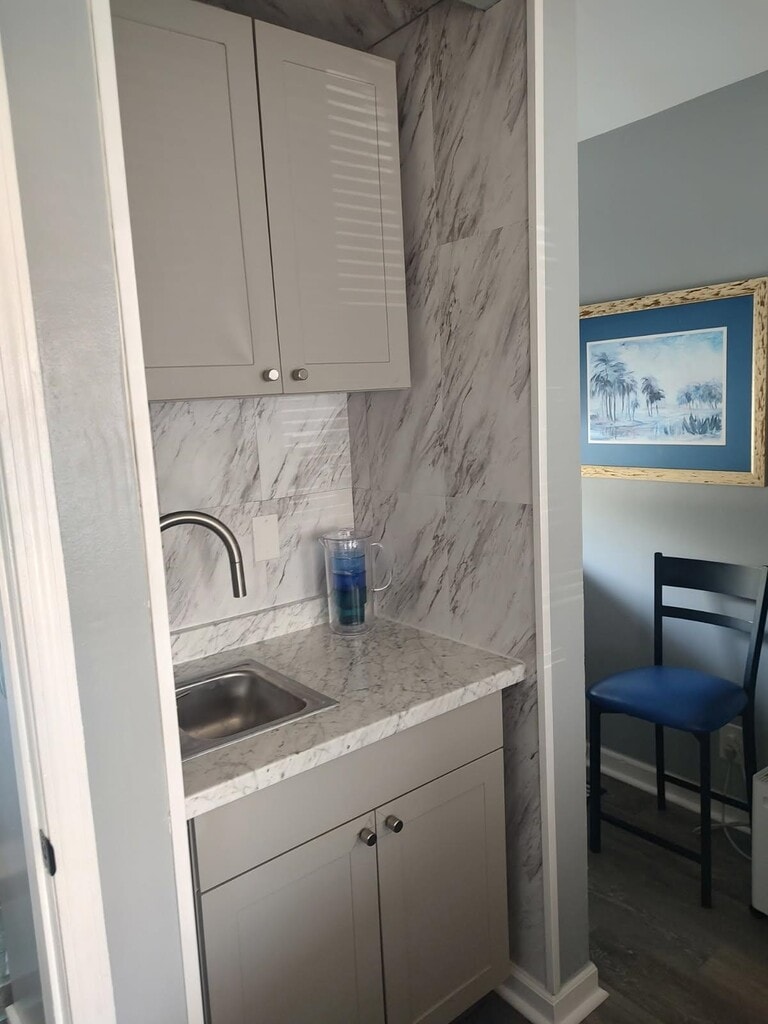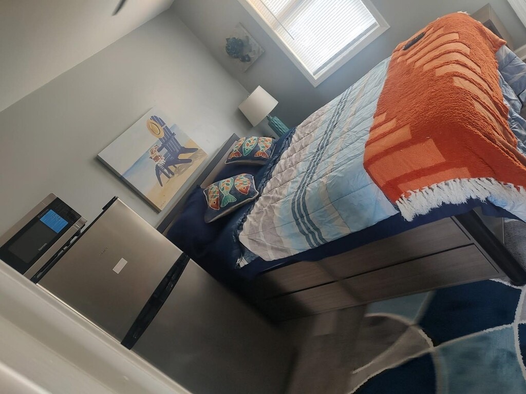One block from the boardwalk,beach and all that Myrtle has to offer. Utilities included. Elec,heat,water,internet,cable. Fully furnished. Saltwater pool. Off street parking. Full sized refrigerator,microwave and cooking surface. Private saltwater pool. Off street parking. Just under 200 sq ft with well-placed storage. Available immediately. Credit and background check,and prior rental references required. No pets. No smoking. Lease is for monthly rental. Short term rental is available.