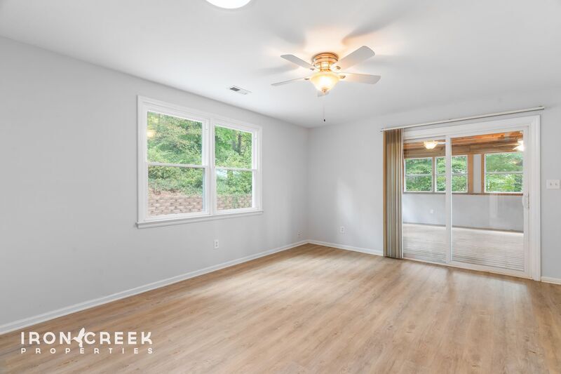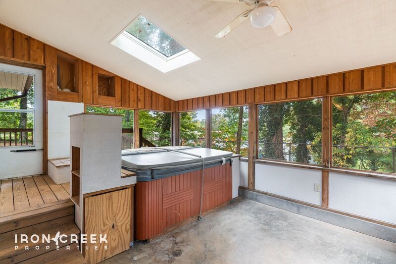 Experience peaceful living in this updated home on a wooded lot in Swannanoa, where mature trees create a private setting just minutes from downtown Asheville. Two enclosed screened porches extend your living space outdoors, while a fenced yard with garden beds and storage shed offers room for hobbies and outdoor enjoyment. This four-bedroom, two-bath home features a flexible floor plan with hardwood and luxury vinyl plank flooring throughout. The kitchen is outfitted with a refrigerator, electric wall oven, separate electric cooktop, dishwasher, and offers abundant granite counter space in a convenient u-shaped layout. The living area includes a propane gas log fireplace and skylights that enhance natural lighting. A versatile intermediate room provides space for a home office, dining area, or den. Located in Swannanoa with convenient access to Interstate 40 and downtown Asheville, the property offers electric heat with natural gas backup and central air conditioning. Washer and dryer are included for added convenience, along with driveway parking. The hot tub has been drained and disconnected; neither it nor the shed are included with this rental. Tenant pays all utilities. Landscaping and lawn maintenance are tenant responsibility. No smoking or vaping allowed. Sorry, this property is not pet-friendly and does not accept co-signers.