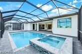 Experience luxury Gulf-access living in this brand-new 2025 featuring 4 spacious bedrooms,a private office,3 elegant bathrooms,and an open-concept layout designed for modern comfort and entertaining. This 2,611 sq. ft. home offers soaring ceilings,expansive sliders,and a stunning chef’s kitchen with a waterfall-edge island,quartz finishes,stainless steel appliances,wall oven,and wet bar. The primary suite provides serene water views,direct pool access,tray ceilings,and a spa-inspired bath with dual vanities,a large walk-in shower,and a freestanding tub. Enjoy Florida living at its finest with an oversized covered lanai,private pool with integrated hot tub,and direct Gulf-access canal perfect for boating,fishing,and exploring nearby islands. Additional features include a 3-car garage,generous guest rooms,city water/sewer in and paid,and a prime location near the future Seven Islands waterfront community. This home offers the ideal blend of luxury,lifestyle,and waterfront convenience.