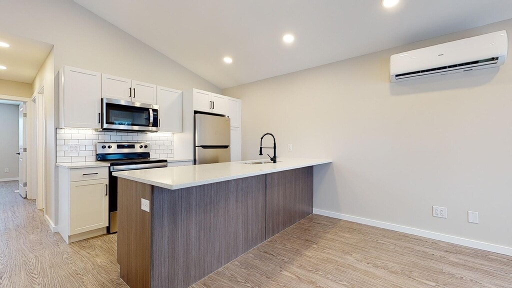Gorgeous 800 sq. ft. upper second level units located at 307 Regent Ave East in the heart of the Transcona neighbourhood in Winnipeg. Kitchen has beautiful quartz countertop island and includes stainless steel appliances - fridge, OTR microwave, stove and dishwasher. Also has a full size laundry set. This 2nd floor unit has a spacious cathedral ceiling, features an efficient galley kitchen with under-cabinet lighting and subway tile backsplash. This home is air conditioned; windows have cordless blinds, the yard will be fully landscaped, onsite parking with plug-in. Pet friendly with approval. Free street parking is also available for guests. This unit is close to schools, shopping and close to a transit route! This 2-unit home has been engineered to be very energy efficient so utilities are quite low. You will not want to miss out on this opportunity, rent is $1625 per month plus utilities. Call or text and mention which rental you are inquiring about.