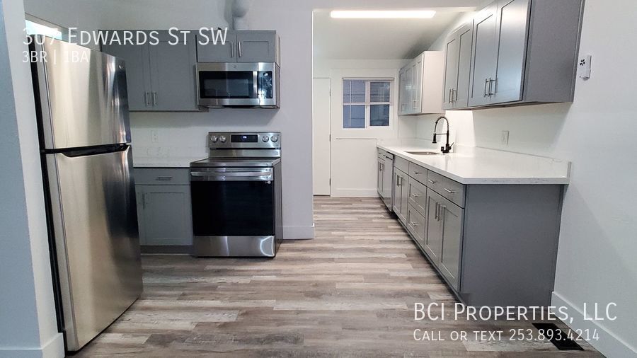 AVAILABLE NOW!!! This 3 bedroom 1 bath duplex is in the heart of Yelm! Everything brand new! Just remodeled. Freshly painted throughout. New modern vinyl flooring, no carpet hassle. Beautiful brand new gray cabinets with Stainless Steele Appliances. Fridge, stove, dishwasher and microwave. Nice washer and dryer near back entry. Carport and street parking. No pets, sorry. Tenants pay all utilities. Forced air. Renter's Insurance required. Deposit $1895.00 Application Fee $55 per adult over 18 307 Edwards St SW Yelm, WA 98597 YOU CAN NOW APPLY ONLINE BY VISITING OUR WEBSITE: **Please see