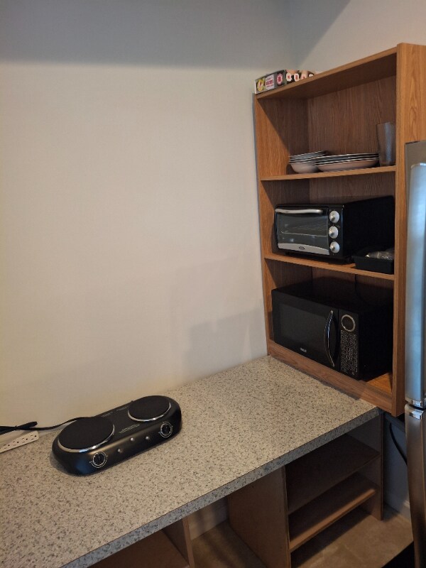 Property Id: 2080367 Great space ready for a travel professional or for short/mid-term occupancy. Looking for a responsible, quiet, non-smoker to occupy the bottom floor of a three level townhouse located near Wegmans. Enjoy a partially furnished studio suite w/ front door entrance, walk in/out level with sliding door and patio on backside. The studio suite has a fireplace heater, 55in TV, queen size bed, couches, dresser, full size refrigerator, electric cooktop burner, toaster oven and microwave, etc. Utilities are a flat fee of $100 to cover electric, gas, water/sewer and wi-fi (no cable). Removal of some or all furniture possible for those interested in long term. Full bathroom with walk-in shower and large linen closet. Shared entrance with separate locking door to studio. Bottom floor access only- no access to upstairs kitchen or laundry. Will consider married couple, otherwise only 1 occupant. No pets please. Flexible terms, 1 mth and up, just inquire.