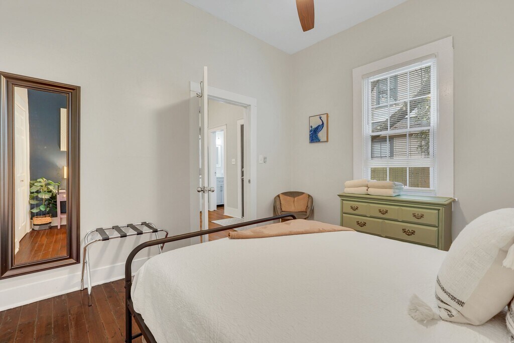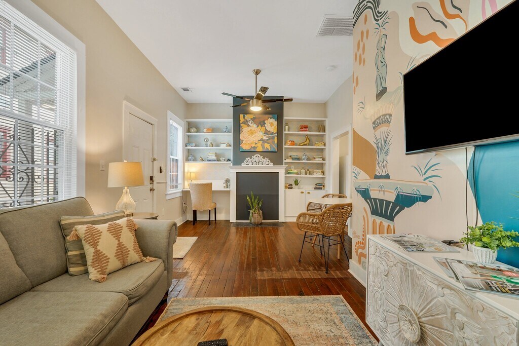 *This home is available for guests looking for a 31+ night rental. Specific pricing is available upon request. Monthly rates range from $2500-$3000/month and final rates are based on season and length of stay. Fully furnished- utilities/internet included* Welcome to Pink Magnolia Cottage, a vibrant and stylish retreat nestled just steps from Forsyth Park and Savannah’s best restaurants, cafés, and boutiques. Tucked away off the beaten path, this charming 1BR/1BA cottage is the perfect getaway for a girls’ weekend, young families, or solo travelers looking to experience the magic of Savannah. Why You'll Love Pink Magnolia Cottage: Stylish & Vibrant Décor: Thoughtfully designed with custom wall murals and chic finishes, every detail in this space is curated for comfort and charm. Historic Character Meets Modern Comfort: This cottage features original heart pine floors, a partially exposed Savannah Grey brick fireplace, and a private outdoor courtyard deck strung with glowing lights—perfect for unwinding after a day of exploring. Prime Walkable Location: Just one block from Forsyth Park, where you can enjoy the Saturday farmers market, local music, and scenic strolls beneath moss-draped oaks. Walk to historic landmarks, cozy coffee shops, and must-visit restaurants in minutes! Book your stay at Pink Magnolia and experience the charm of Savannah like a local! Sleeping Configuration: Bedroom: Queen Bed Living Room: Queen Sleeper Sofa
